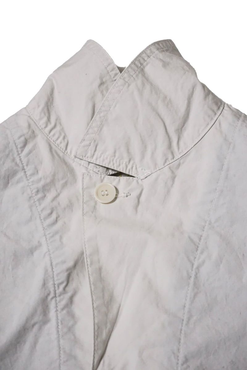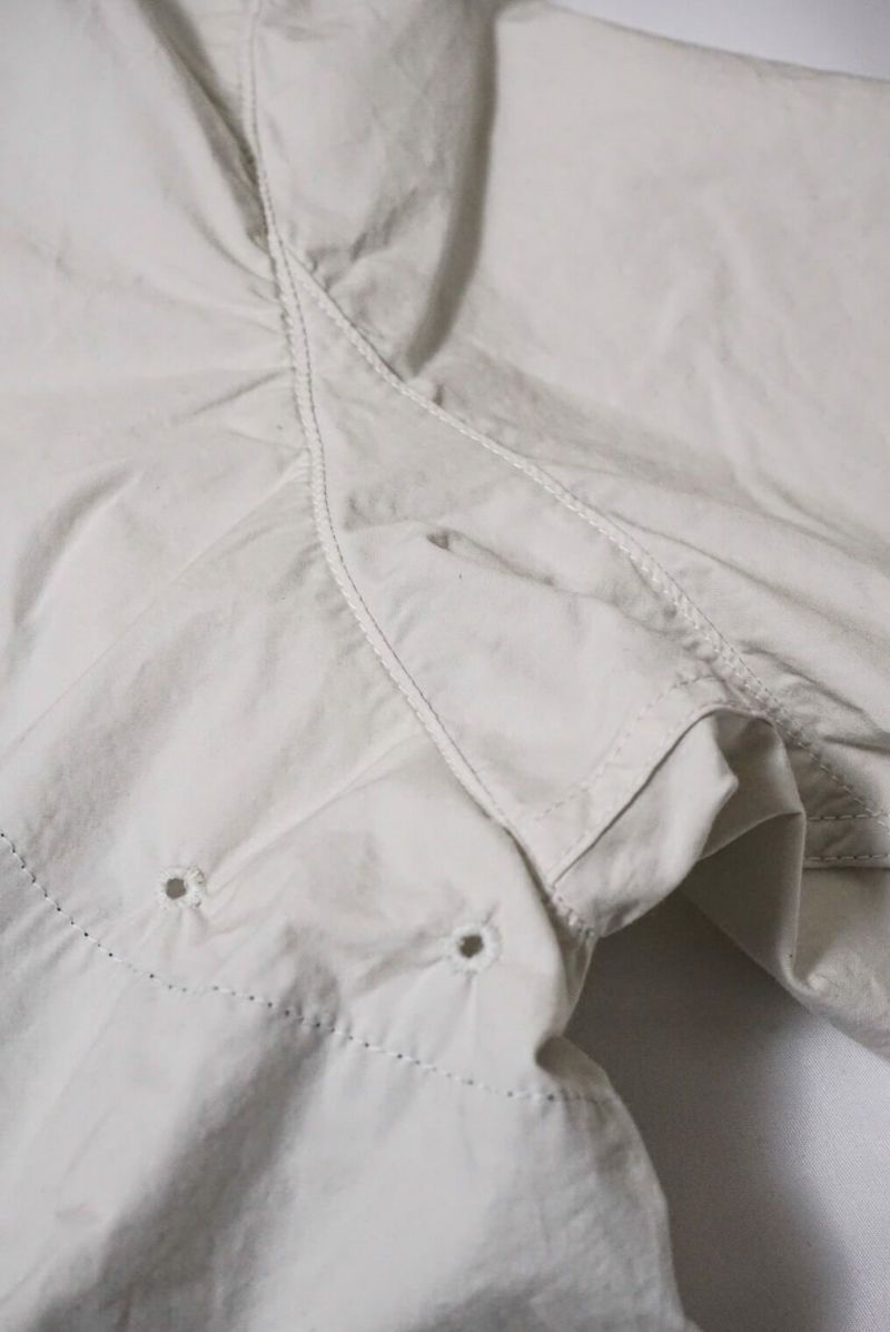使用している生地は、40番糸のコットンタイプライタークロス。タイプライタークロスとは、40~80番手の糸を高密度に織り込んだ平織り生地で、タイプライターリボンのようなパリパリとした質感が特徴です。この40'S タイプライタークロスは適度な厚みがあり、春ジャケットに最適です。