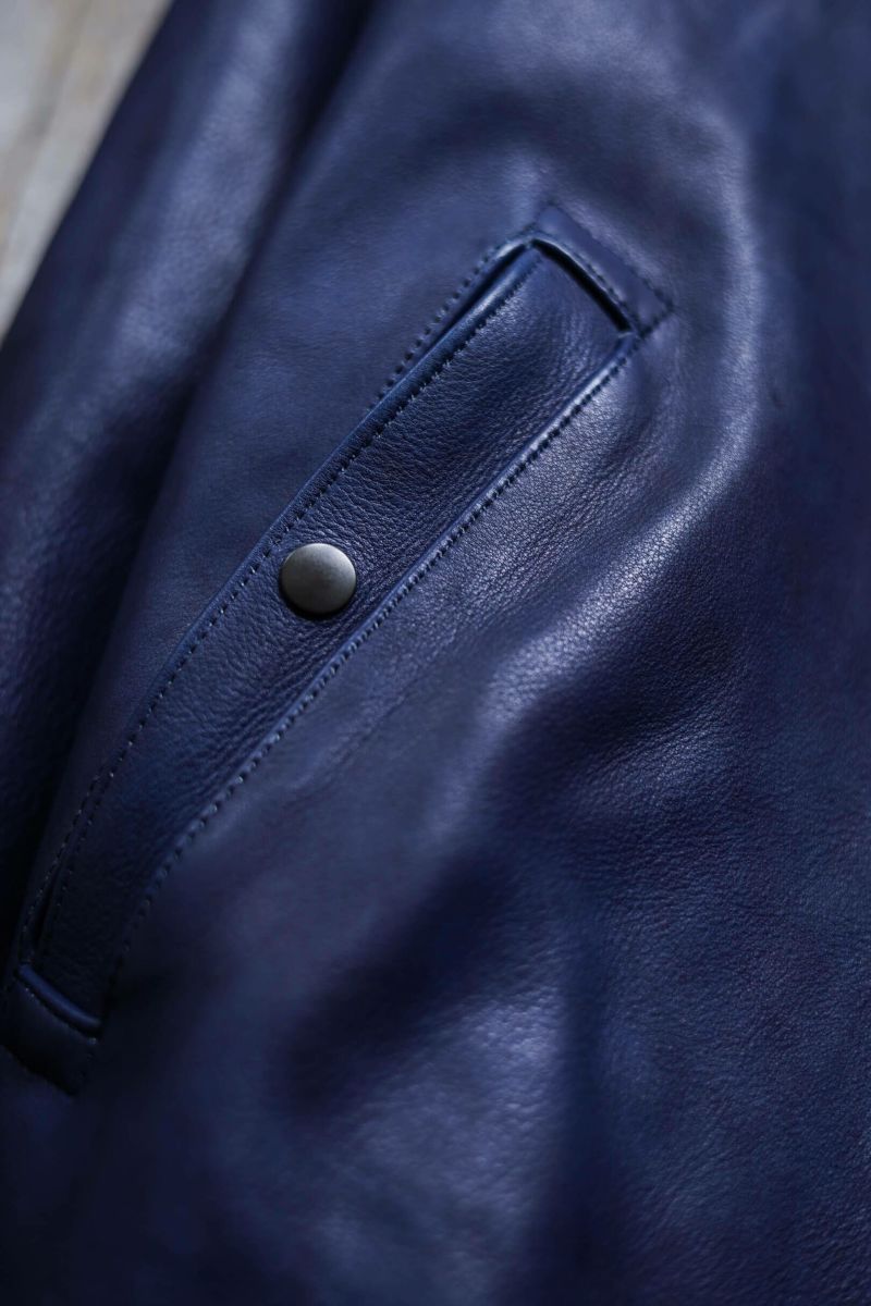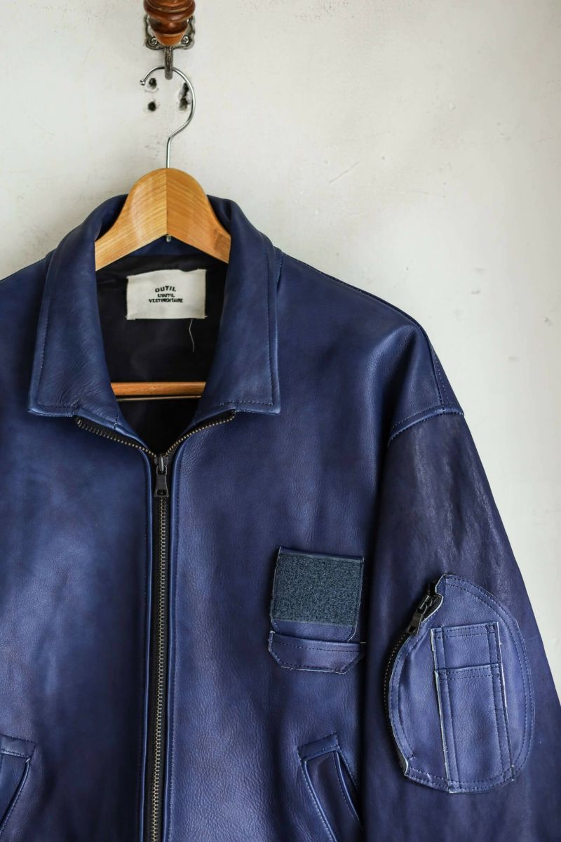 フランス空軍のPILOT JACKETをベースに、極上のレザーを用いたOUTIL(ウティ)渾身のレザージャケット "VESTE GOUDON" 肉厚でいて滑らかな質感である上質なレザーを、ウティの代名詞とも言えるインディゴ染めを施した唯一無二の素材。 オリジナルにはない上質な雰囲気、着用によって退色する美しさをイメージし作成しています。 ※生産の都合上、全国でも限定数での販売です。 INDIGO LEATHER OUTIL / VESTE GOUDON Price ¥260,000(税込)