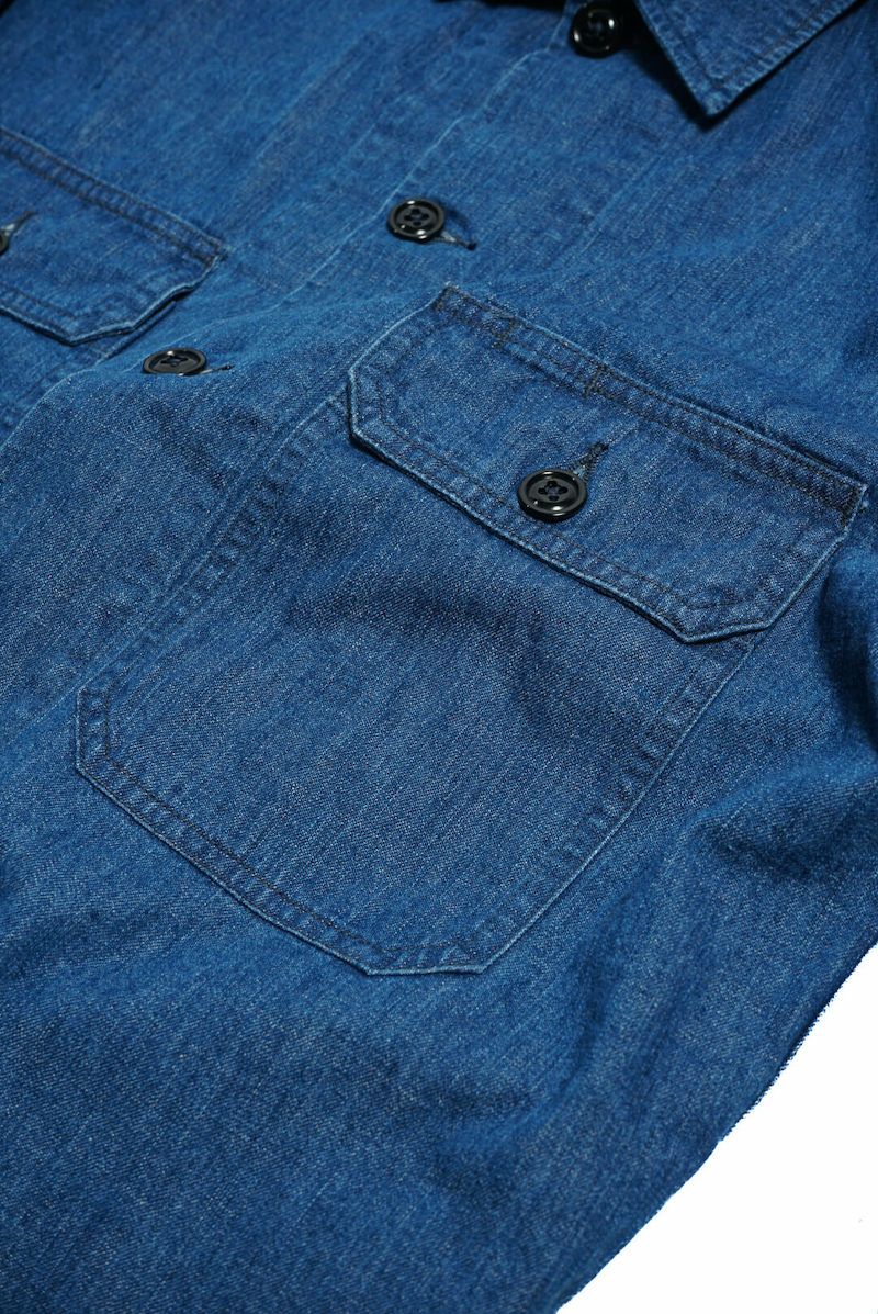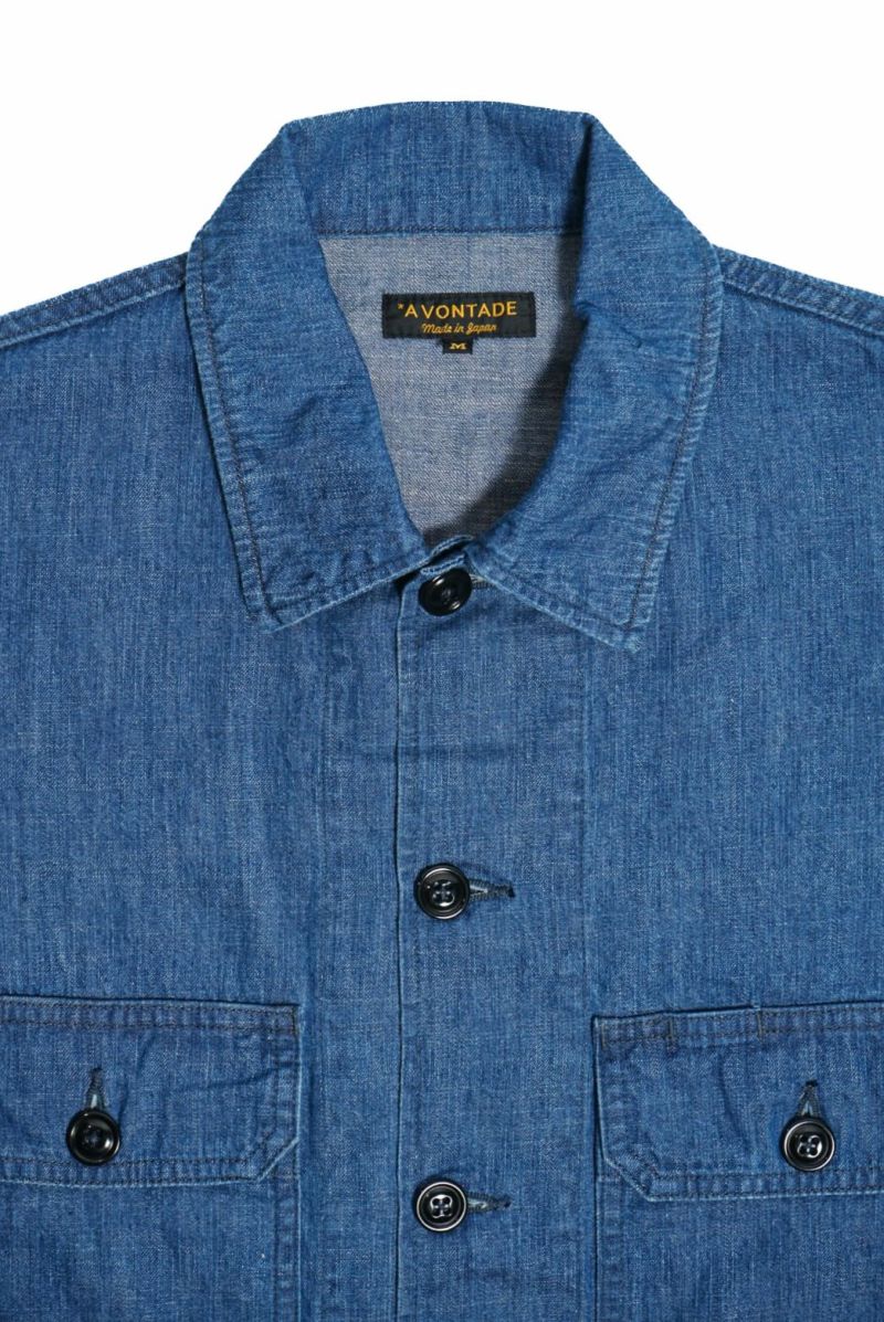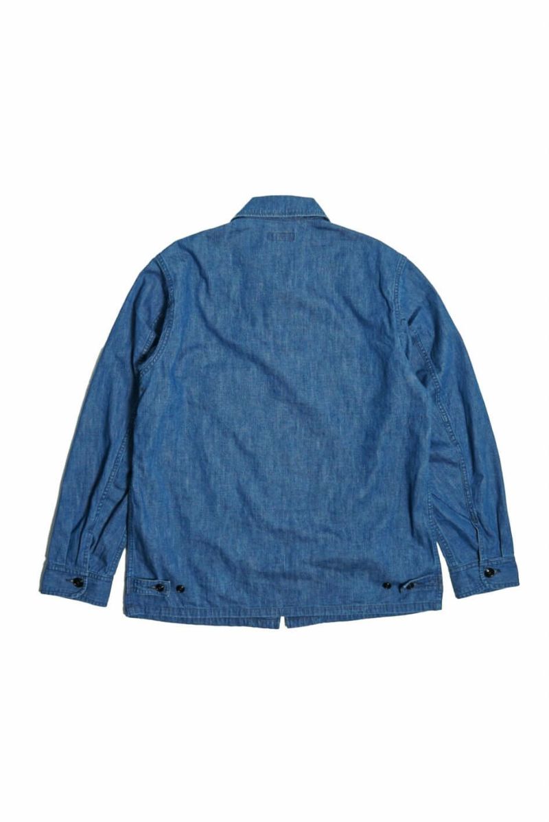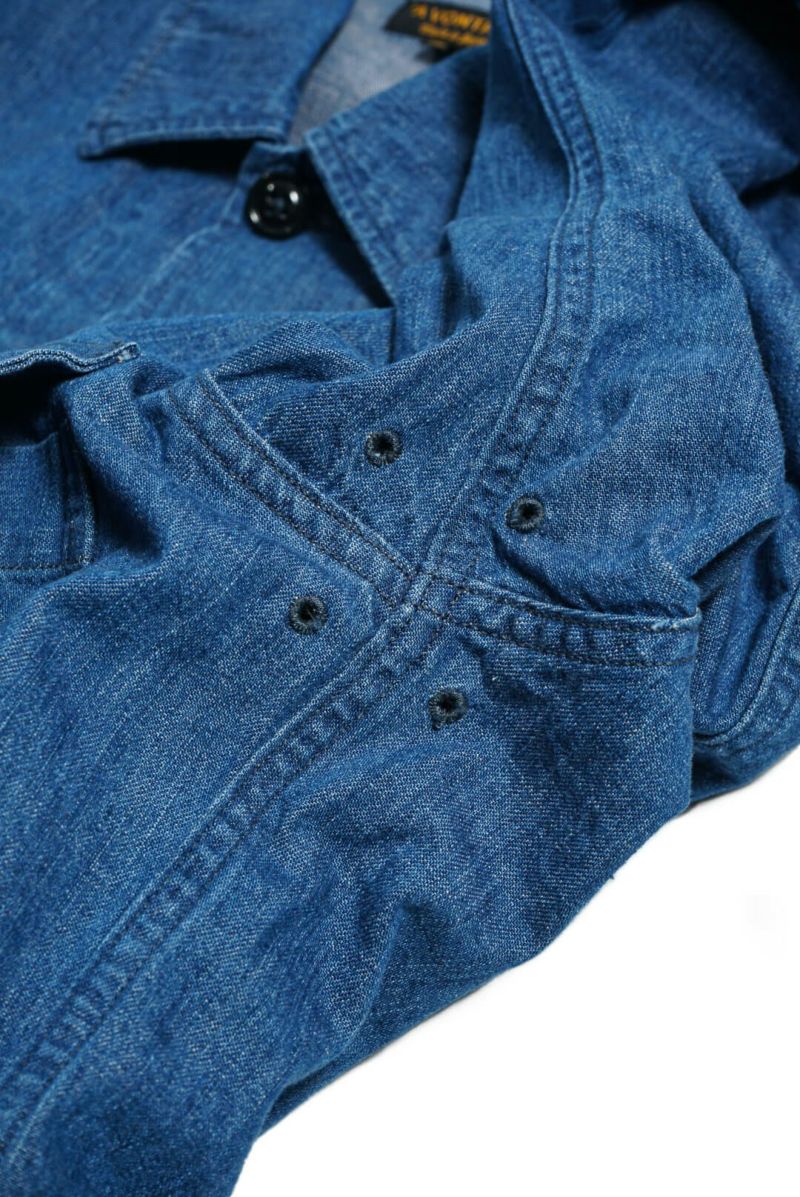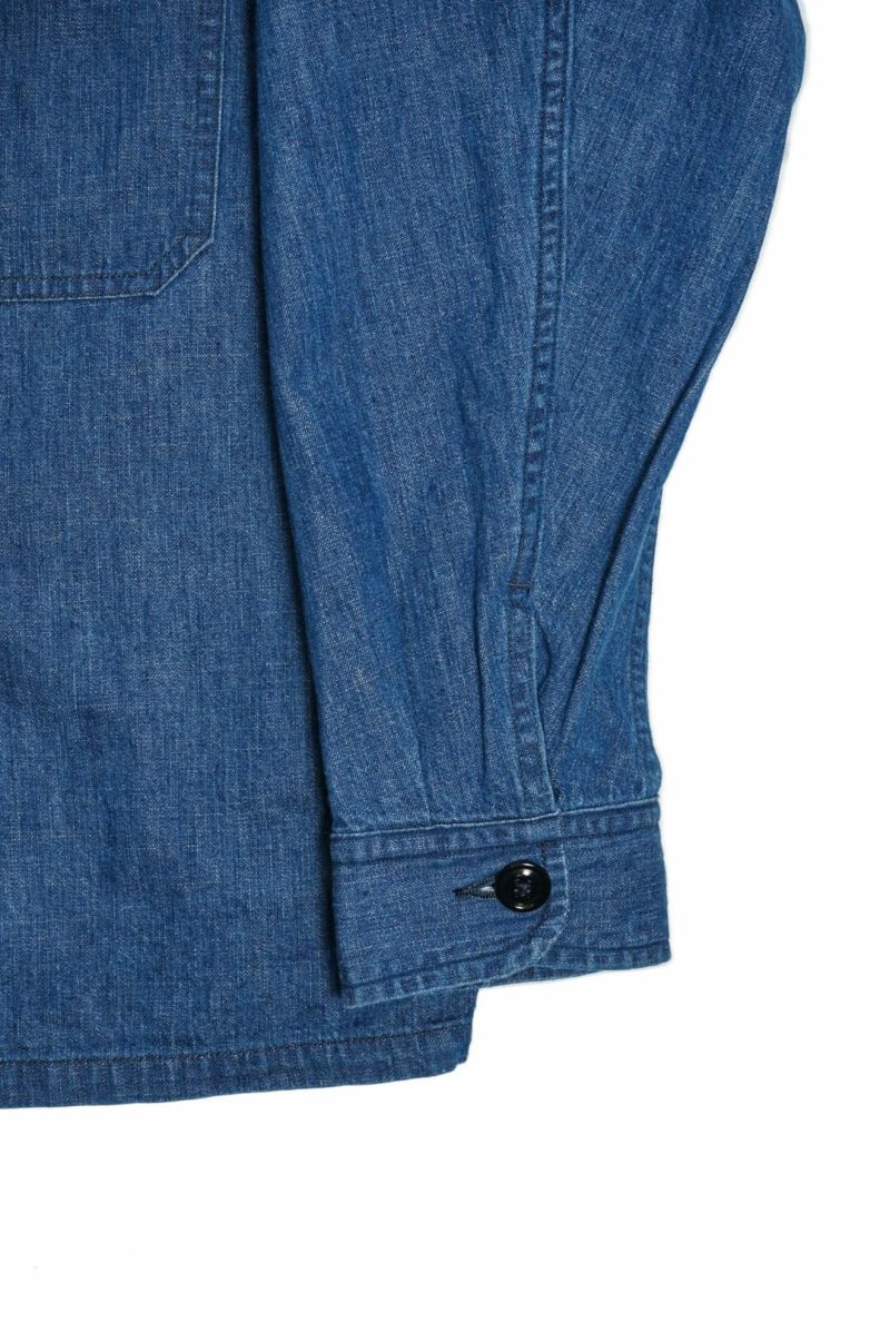 60~70'sのベトナム戦争時に米軍で採用されたモデルをベースにデザインされた、定番のシャツジャケット、シーズンファブリックです。素材は8ozデニム。仕上げにフェード加工を施し、ある程度着込んだ風合いに仕上げています。オリジナルにない仕様として筒袖をカフス付きに変更。シルエットに変化をつけれるように裾脇にはアジャストタブを、脇下には菊穴を開けて通気性を確保しています。