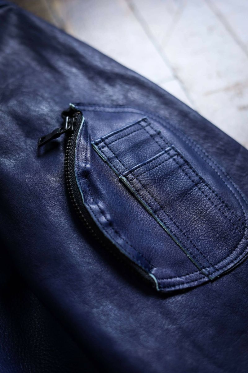 フランス空軍のPILOT JACKETをベースに、極上のレザーを用いたOUTIL(ウティ)渾身のレザージャケット "VESTE GOUDON" 肉厚でいて滑らかな質感である上質なレザーを、ウティの代名詞とも言えるインディゴ染めを施した唯一無二の素材。 オリジナルにはない上質な雰囲気、着用によって退色する美しさをイメージし作成しています。 ※生産の都合上、全国でも限定数での販売です。 INDIGO LEATHER OUTIL / VESTE GOUDON Price ¥260,000(税込)