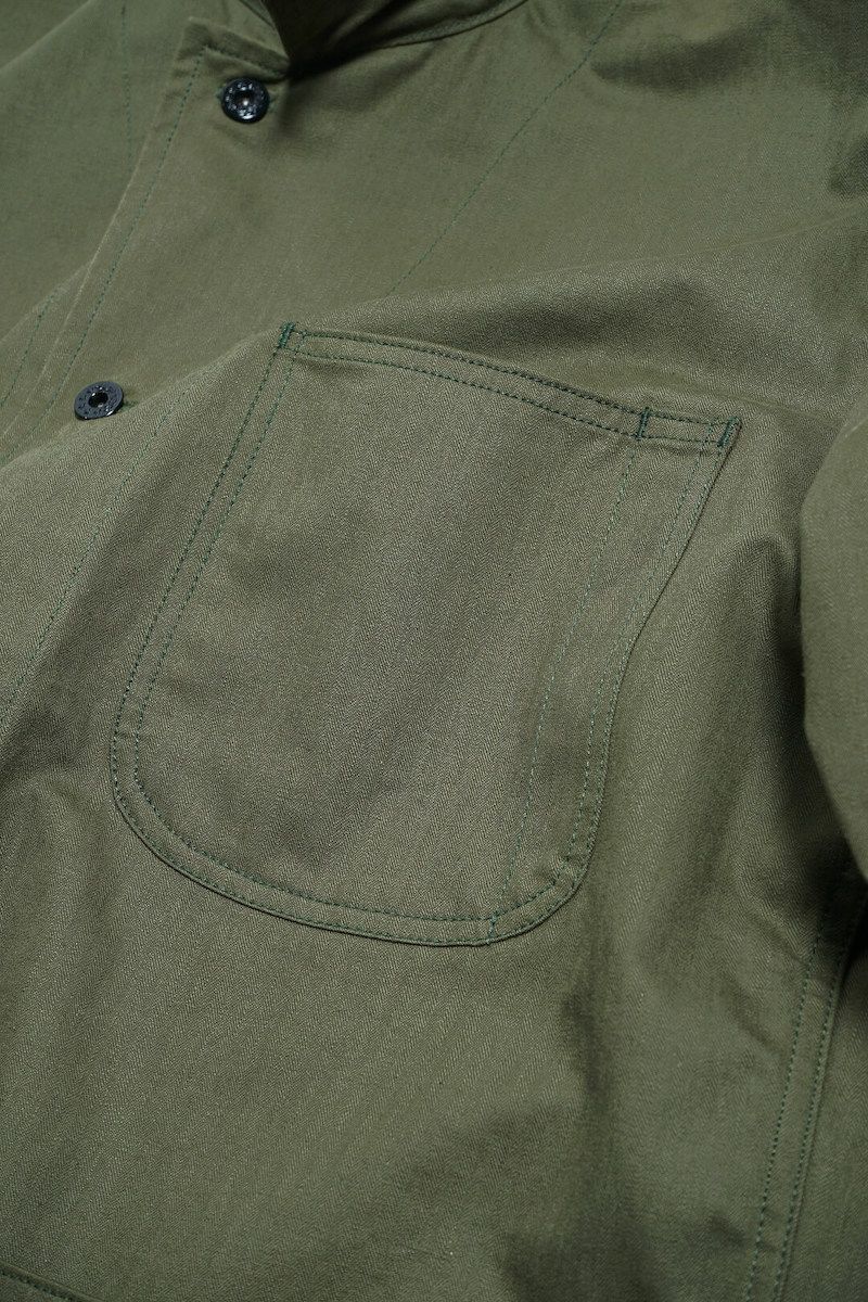 MSG & SONS(エムエスジーアンドサンズ) 1940年代、第二次世界大戦期にUS NAVYへ支給されていたN-3 UTILITY JACKETをデザインソースに製作された1着。 このジャケット最大の特徴は、あらゆるミリタリーアイテムの中で最もパターン数が少なく、とにかく無駄のないアイテムであるということ。パターン数が6枚で形成され、なによりも量産の効率性を考えられています。背中のはぎが無く、袖は一枚袖。現代で考えると、贅沢に製作された仕様です。 生地については、この年代のミリタリーアイテムを代表するヘリンボーンツイルで当時のオリジナルに合わせた染色工程を見い出し、生地カラー(デットストック品)を忠実に再現。黒塗装されたドーナツ型の月桂樹が刻印されたタック釦は、当時と同じように型取りを行い、鉄製と同じ素材で製作しています。 アメリカらしい、当時のクラシックなユニフォームを、これからの時代にむけて再構築されたアイテム。時代背景の意味や意義を大切に考え、文化や歴史を紐解いて製作されています。 <素材> COTTON 100% <生産国> MADE IN USA 商品についてのブログはこちら MSG & SONS / N-3 JACKET - MADE IN USA PRICE : ¥69,300(税込み) 品番 : 921201
