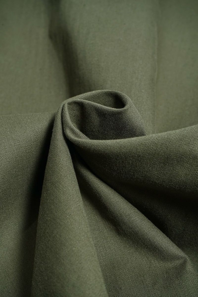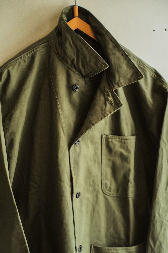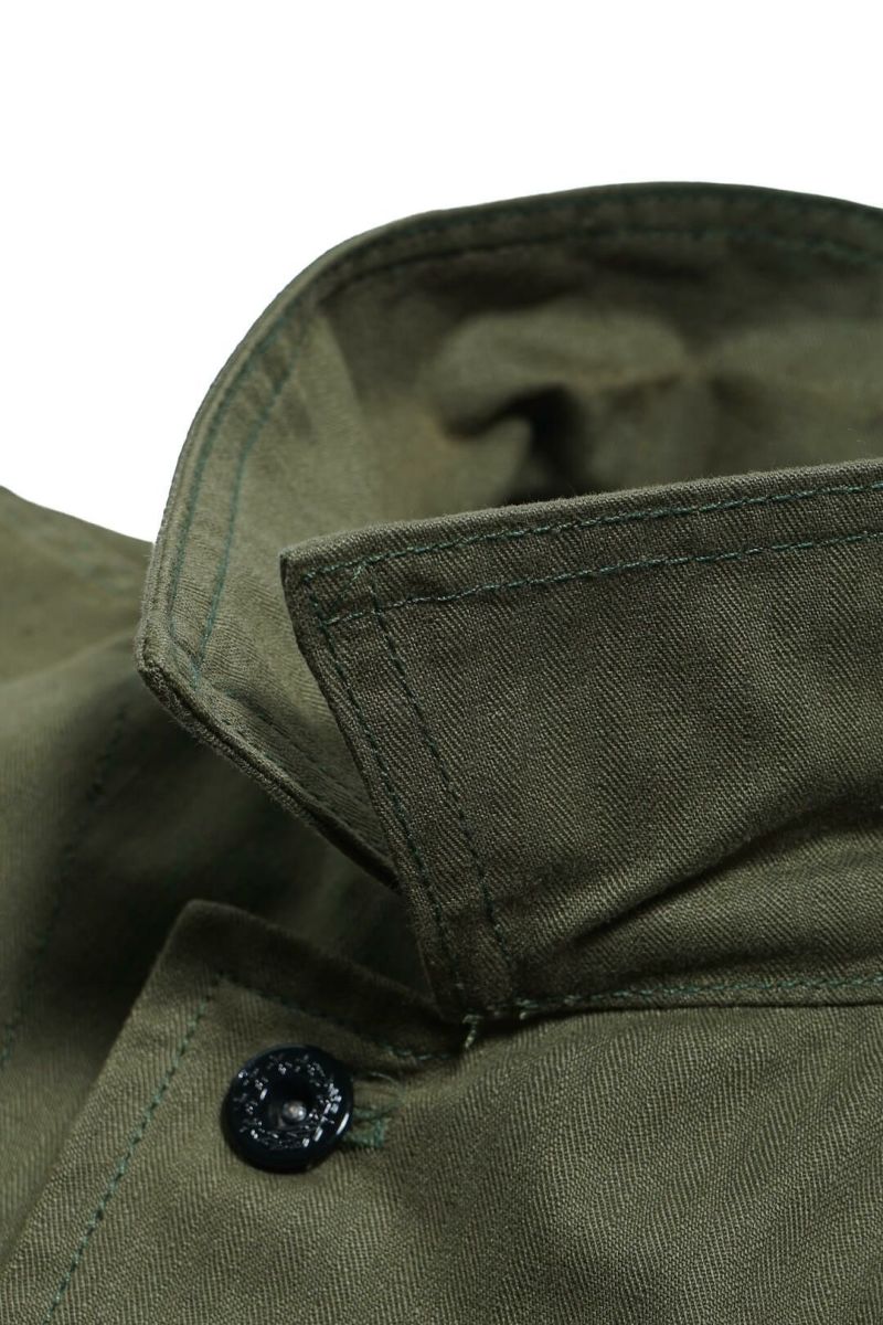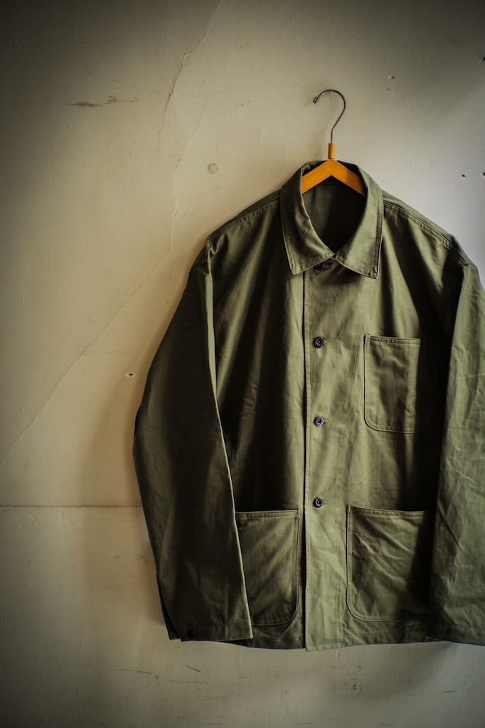 MSG & SONS(エムエスジーアンドサンズ) 1940年代、第二次世界大戦期にUS NAVYへ支給されていたN-3 UTILITY JACKETをデザインソースに製作された1着。 このジャケット最大の特徴は、あらゆるミリタリーアイテムの中で最もパターン数が少なく、とにかく無駄のないアイテムであるということ。パターン数が6枚で形成され、なによりも量産の効率性を考えられています。背中のはぎが無く、袖は一枚袖。現代で考えると、贅沢に製作された仕様です。 生地については、この年代のミリタリーアイテムを代表するヘリンボーンツイルで当時のオリジナルに合わせた染色工程を見い出し、生地カラー(デットストック品)を忠実に再現。黒塗装されたドーナツ型の月桂樹が刻印されたタック釦は、当時と同じように型取りを行い、鉄製と同じ素材で製作しています。 アメリカらしい、当時のクラシックなユニフォームを、これからの時代にむけて再構築されたアイテム。時代背景の意味や意義を大切に考え、文化や歴史を紐解いて製作されています。 <素材> COTTON 100% <生産国> MADE IN USA 商品についてのブログはこちら MSG & SONS / N-3 JACKET - MADE IN USA PRICE : ¥69,300(税込み) 品番 : 921201