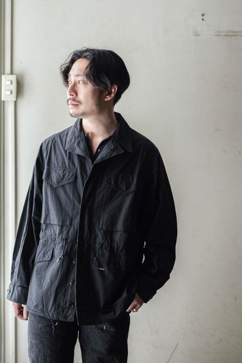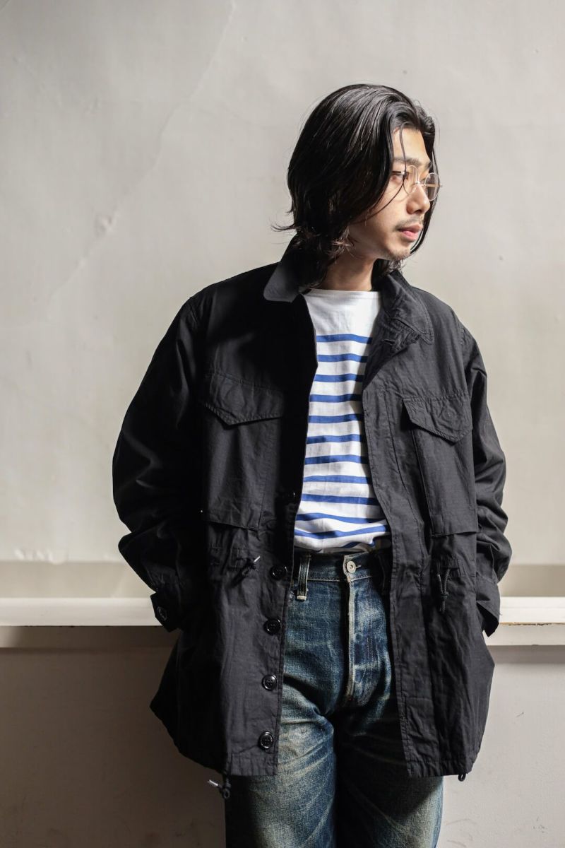 フィールドジャケット=野戦服でありながら洗練されたジャケットスタイルのデザインで、唯一フロントジッパーの付かない釦仕様です。このアイテムは、M-43フィールドジャケットの特徴をそのまま活かし、デイリーウエアとして再構築したものです。エポレットを省略し、裏地無しの軽い春ジャケットとして提案します。
