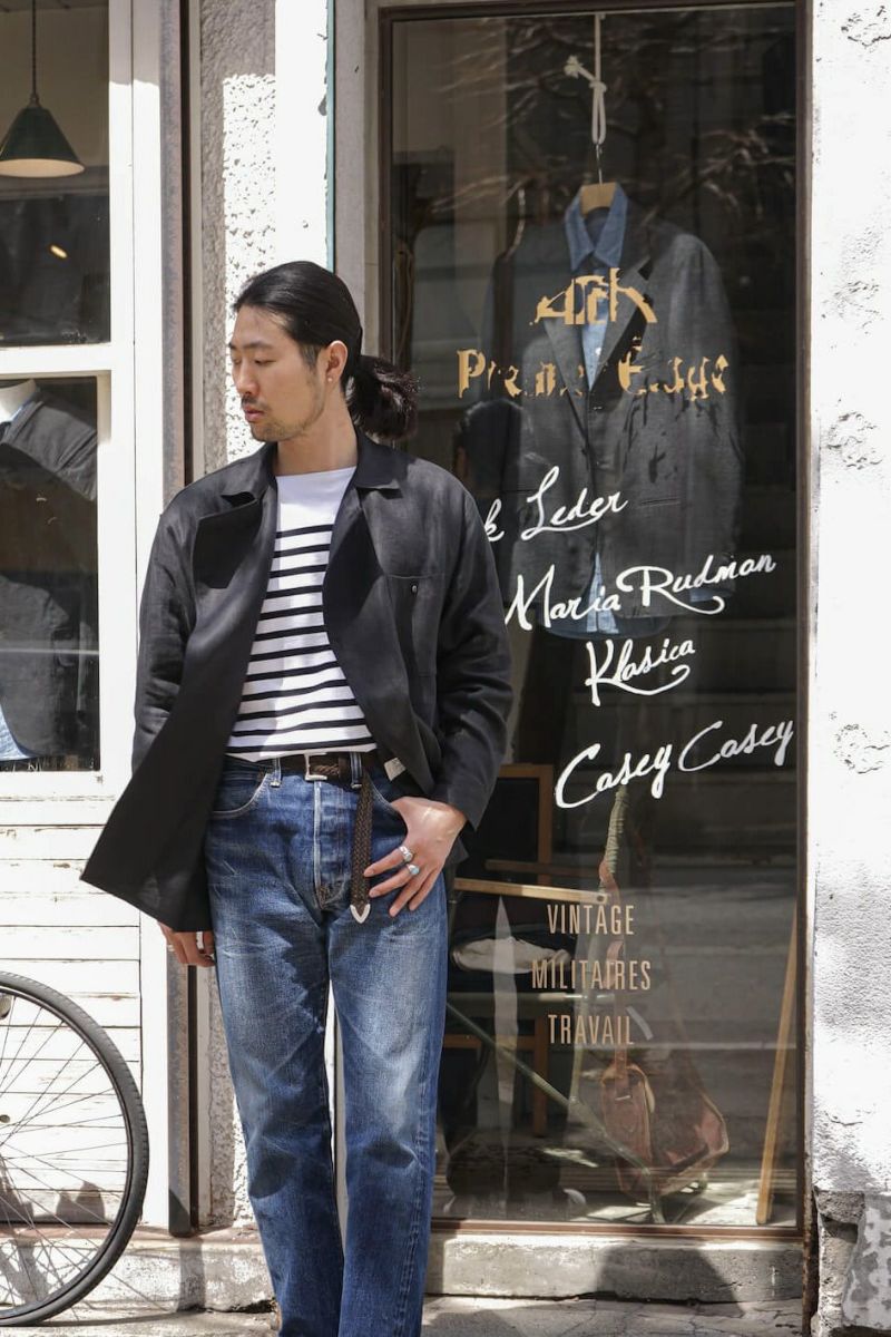 アシンメトリックなフロントデザインが特徴のフレンチヴィンテージワークウェアをベースとした、ARCHオリジナルレーベル新型のシャツジャケット。フランスらしい、洗練されたデザインを活かして製作した一枚です。