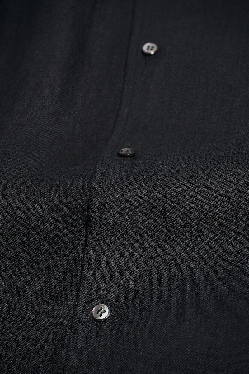 フロントを閉めて着るも良し、開けてドレープ感を楽しむも良し、襟を折り返してジャケットのように着こなすのも良しと、様々な着方を楽しめる、他には無い一枚となっています。