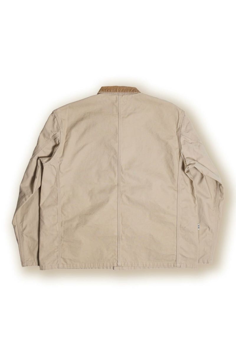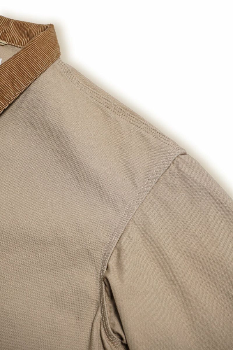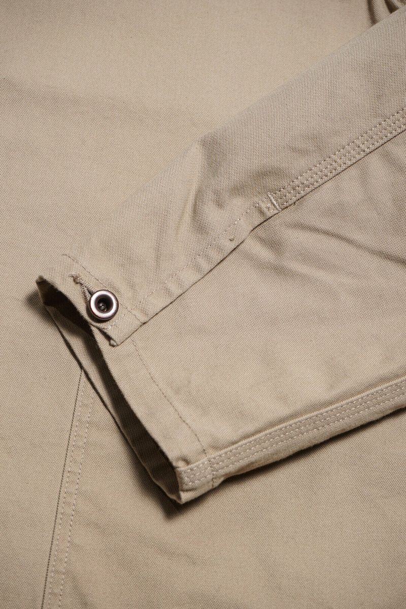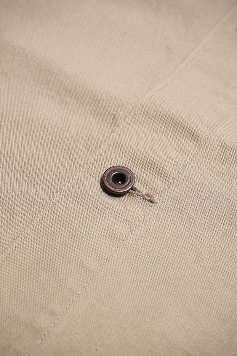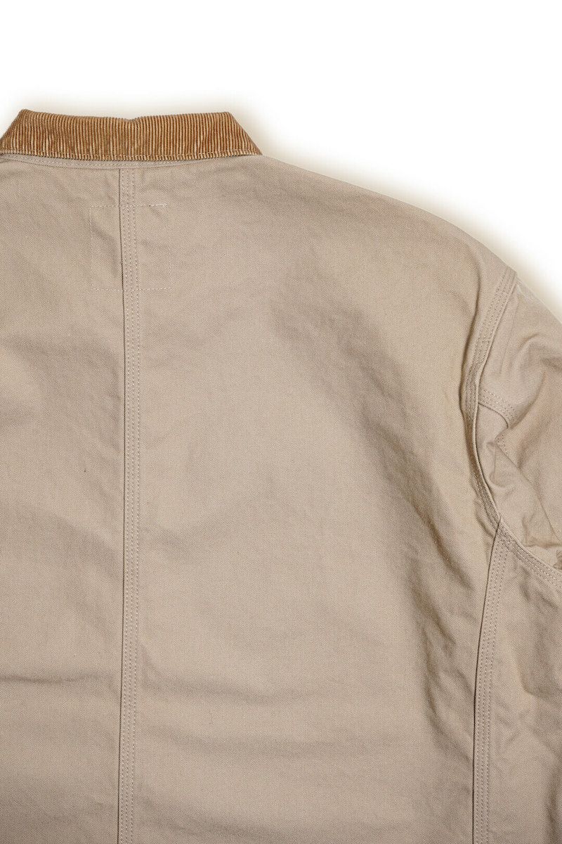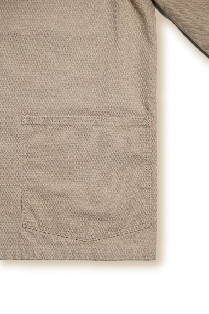 着丈が短めなシンプルなカバーオール。(40'Sのカバーオールがデザインソースとなりブランドを代表する品番です)身巾にはゆとりがあり、着丈が短いので一般的なデニムカバーオールとは少し違ったシルエットが魅力です。襟部分と同生地のコーデュロイパンツと合わせて着るとユニフォーム感もでて◎生地はオーガニックコットンを使用したダックで、環境に配慮した「倉敷染め」で染色したもの。