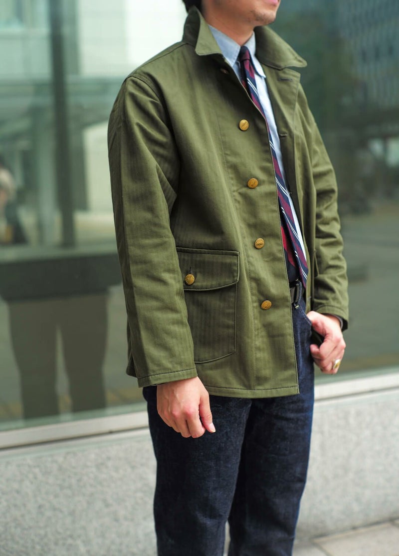オリジナルで一から製作されたヘリンボーンの生地は、40年代のUS ARMYに採用されていた生地を彷彿とさせます。
