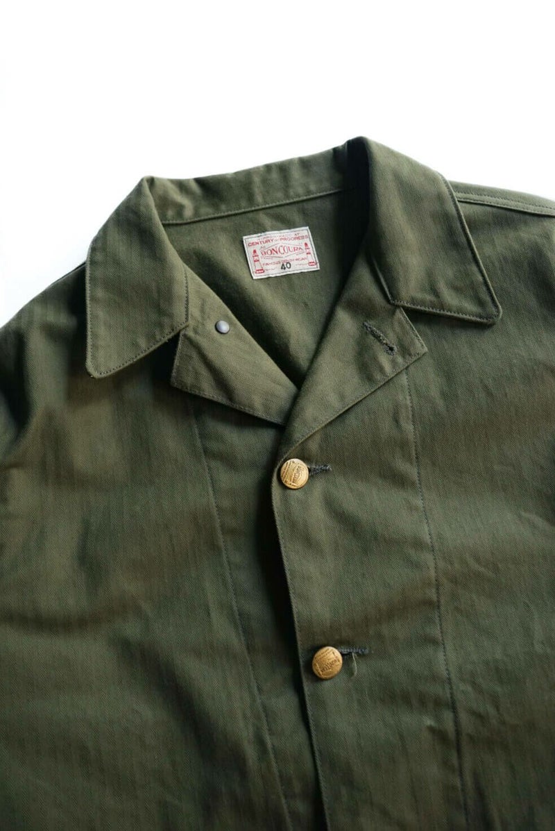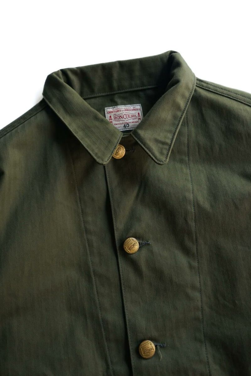 オリジナルのヴィンテージはデニム生地を採用していますが、BONCOURAではヘリンボーンの生地を用いています。