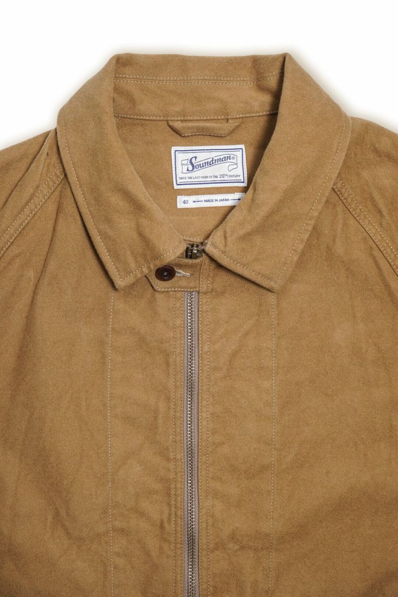アメリカの小雨・霧雨用のスポーツジャケット、和製英語でスイングトップ型のショート丈ブルゾンをイメージ。レギュラーカラーとラグランスリーブを組み合わせ、左袖には