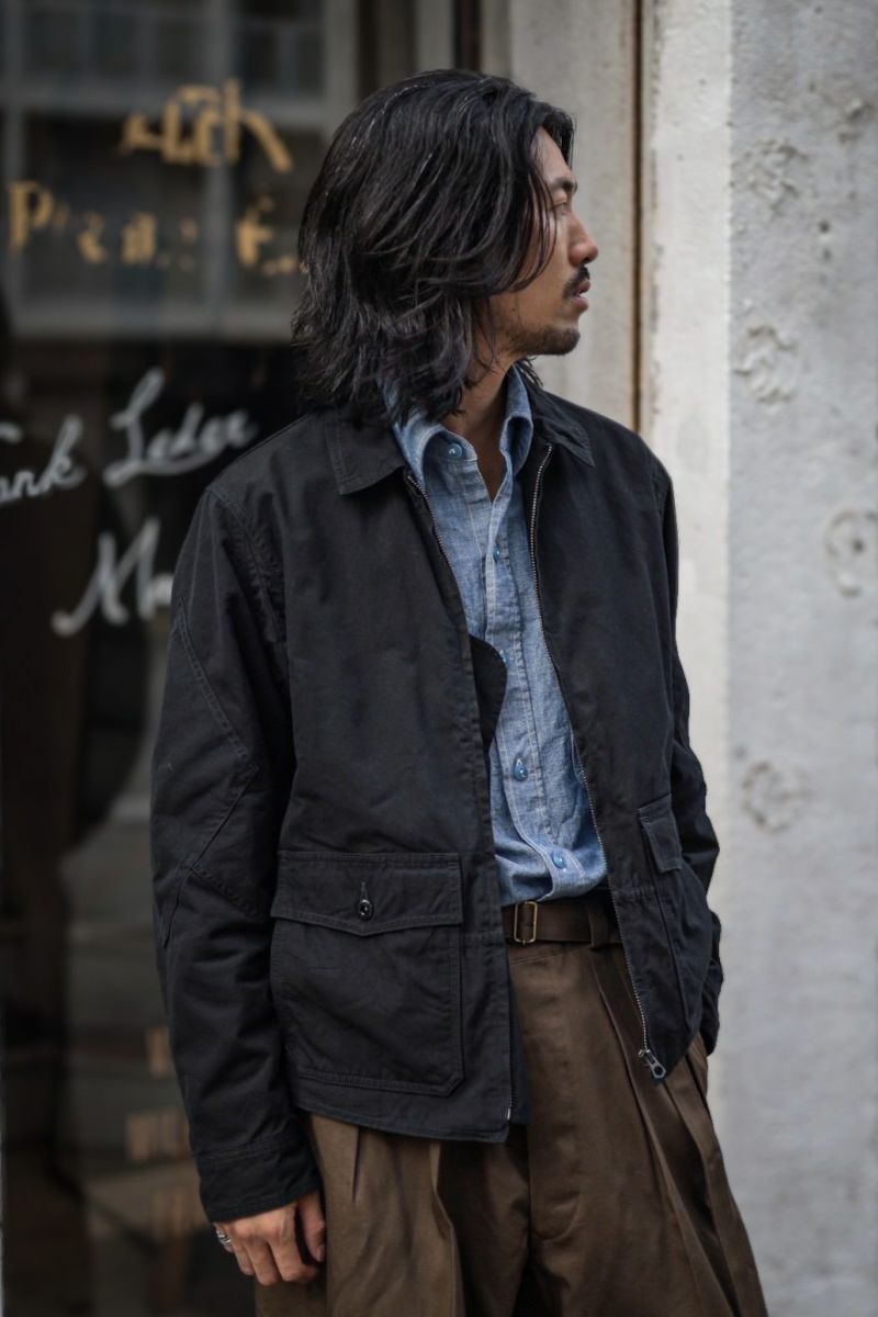 このジャケットは、US NAVY、幻のフライトジャケット、Willis & Geiger ・ Corona Exclusive (Corona別注) G-8です。G-8は後続モデルのG-1が誕生するまでの7年間活躍した、幻のジャケットと言われています。小さい襟と肘に付いているダイヤモンドパッチが特徴です。全体的にややフィットしたモダンなシルエットが新鮮です。