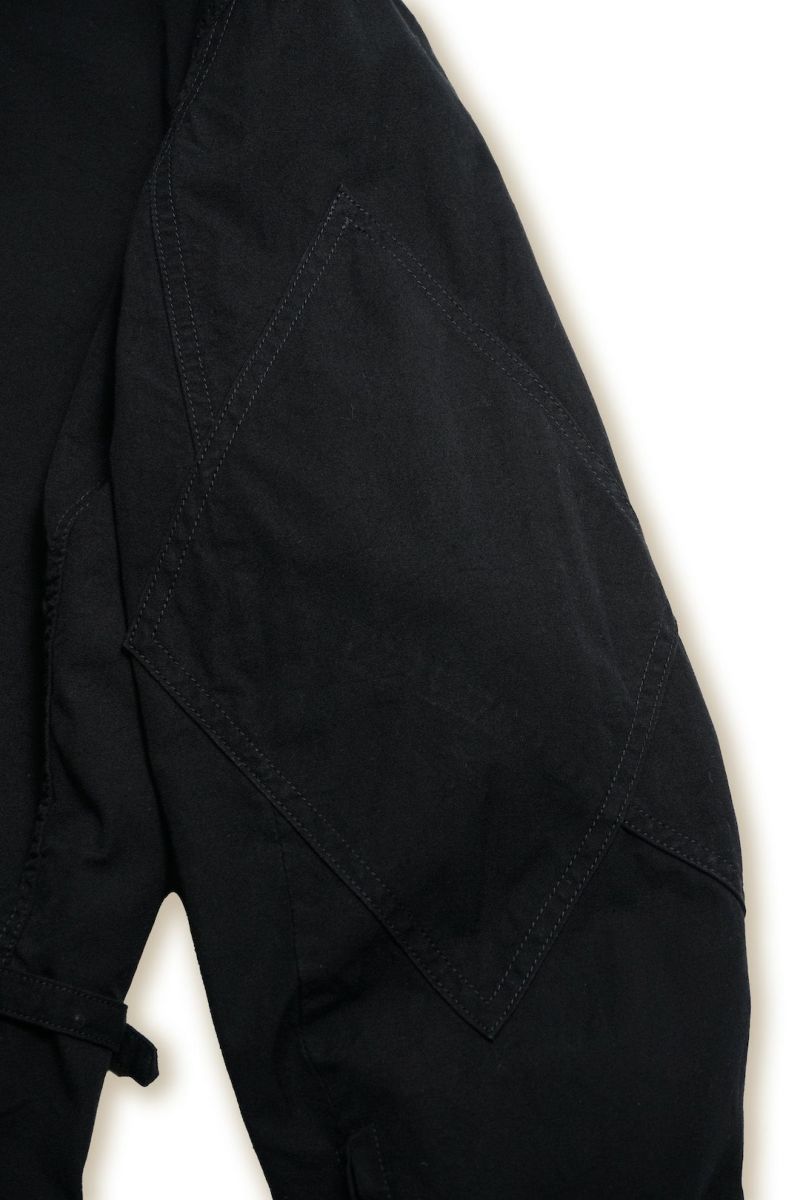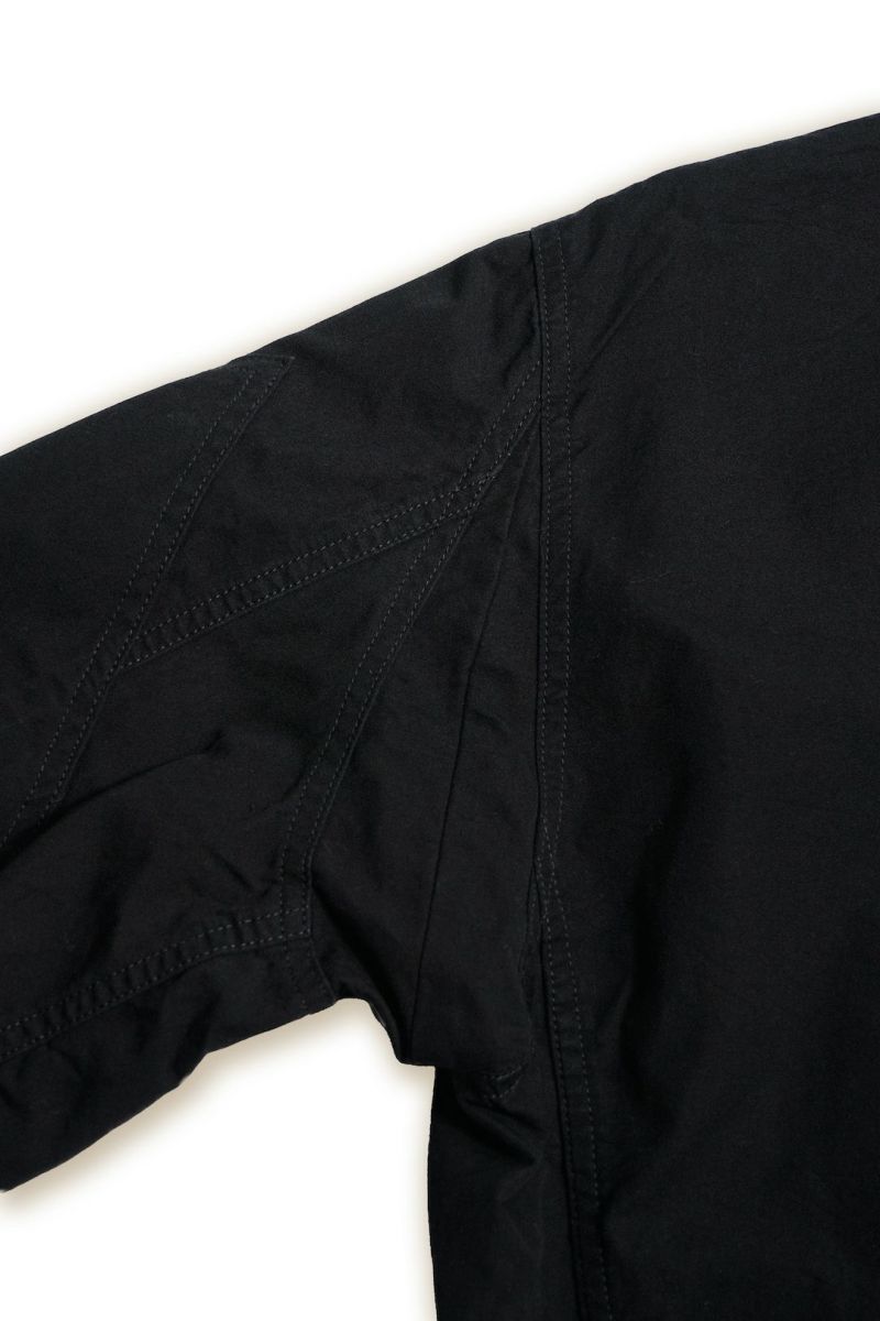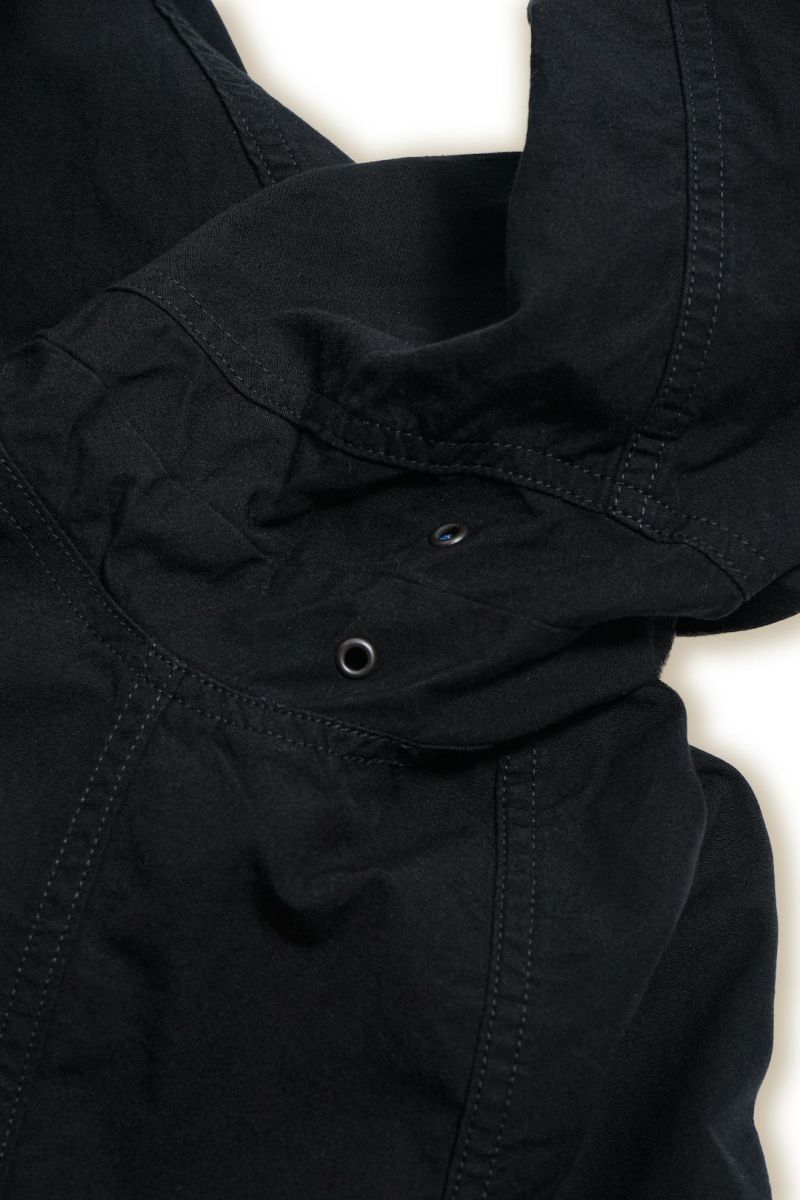 生地は、1インチあたり340本の綿糸を高密度に織り上げたことに由来する名前をもつ”340 Bush Poplin”を使用。アフリカのブッシュ(森林・灌水地帯)でも快適に着用できるうえ耐久性に優れ、身体をしっかりと守る素材として開発されました。超長繊維エジプト綿糸とカリフォルニア綿糸を使用し、両方向に撚りをかけた四子撚り糸を旧式の織機で高密度に織り上げています。さらにマーセライズ加工を施したコットン糸を使用し、独自の手法で微起毛仕上げを施した100%コットンの高機能素材です。