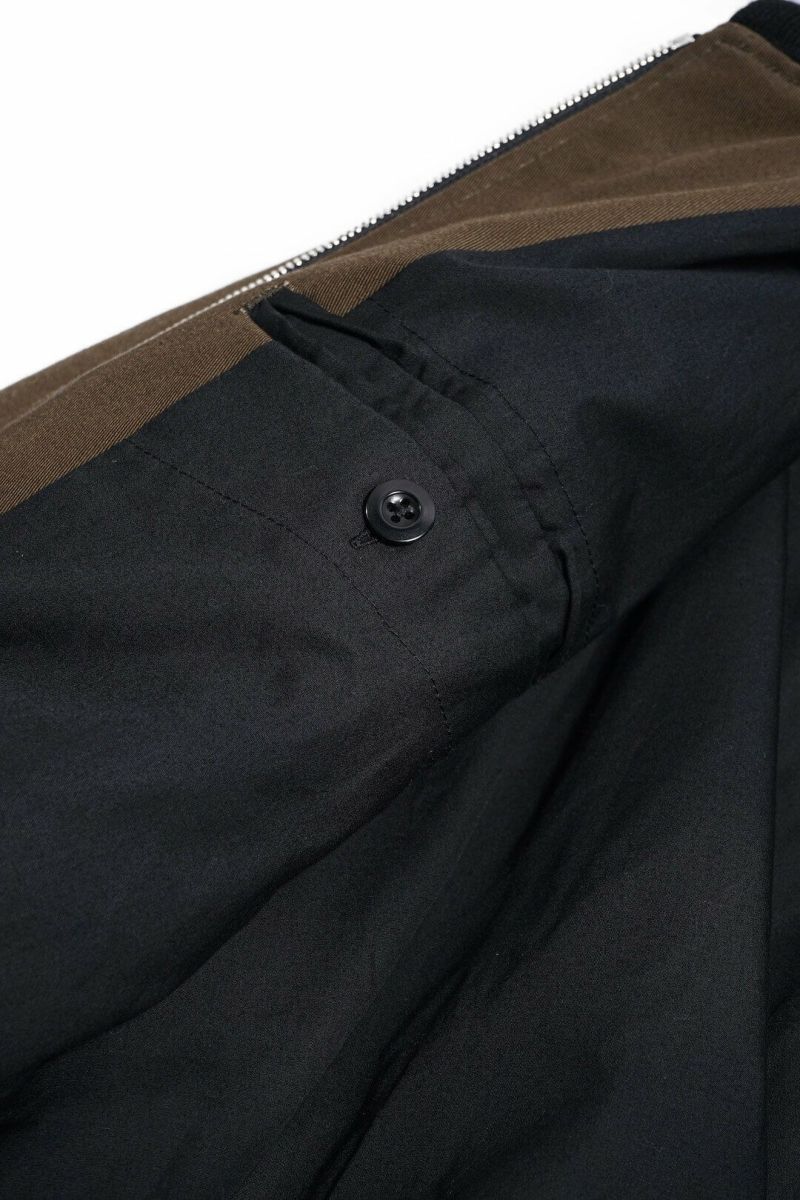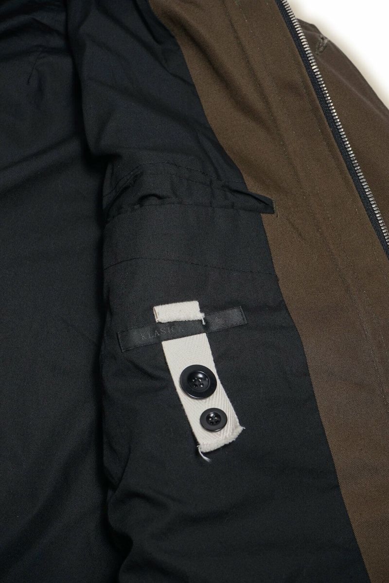 沢山のギャザーが入った背面と立体的に裁断されたアームが目を惹くボリュームのあるブルゾン。アメリカ軍のヴィンテージデッキジャケットから着想を得ています。素材は、コンパクト紡績のコームドコットンを織り上げたチノクロス。高密度で肌理の美しいチノは洗っても引き締まった表情を保ちます。