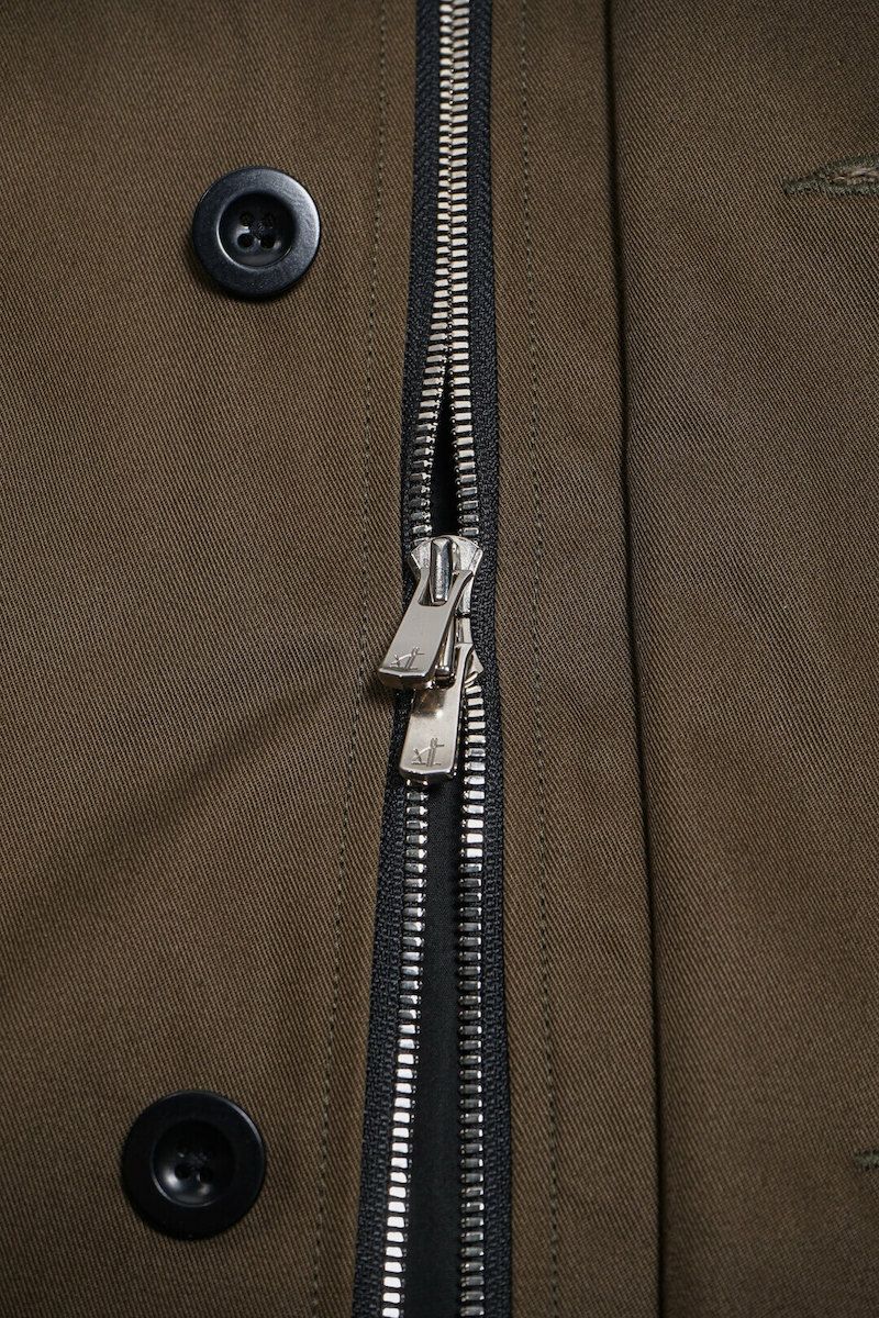 沢山のギャザーが入った背面と立体的に裁断されたアームが目を惹くボリュームのあるブルゾン。アメリカ軍のヴィンテージデッキジャケットから着想を得ています。素材は、コンパクト紡績のコームドコットンを織り上げたチノクロス。高密度で肌理の美しいチノは洗っても引き締まった表情を保ちます。