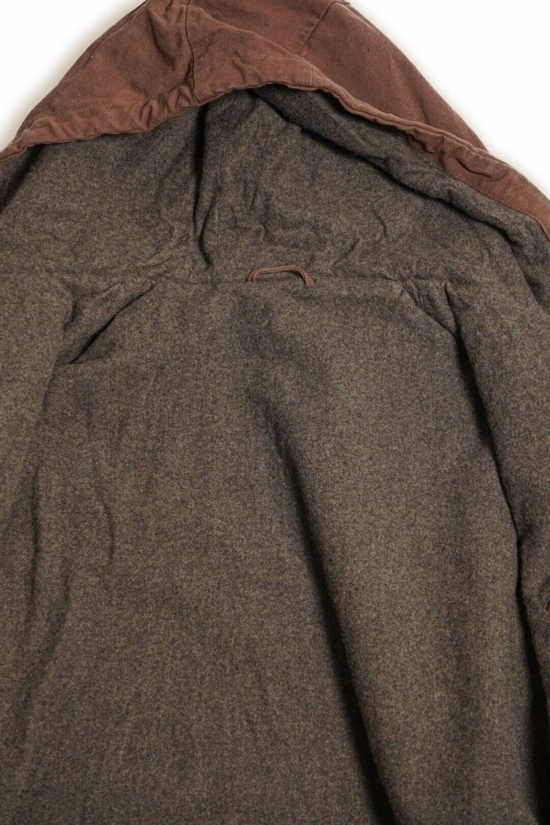 タテ糸にコットン、ヨコ糸にヘンプの太番手を使用し、高密度に織ったヘビー・オックスフォード。日本の伝統的な染料、墨と柿渋にて染めあげ、仕上げでテンションを掛けずに何度も洗い込んで膨らみを持たせています。