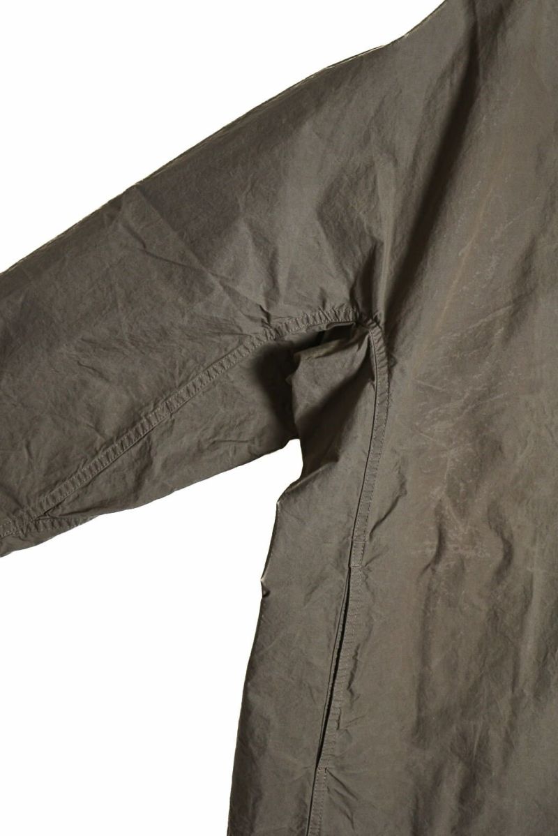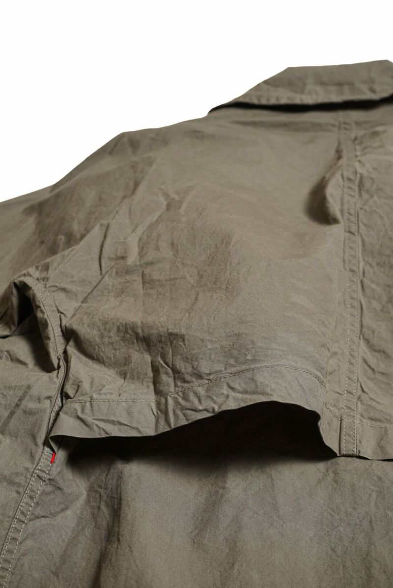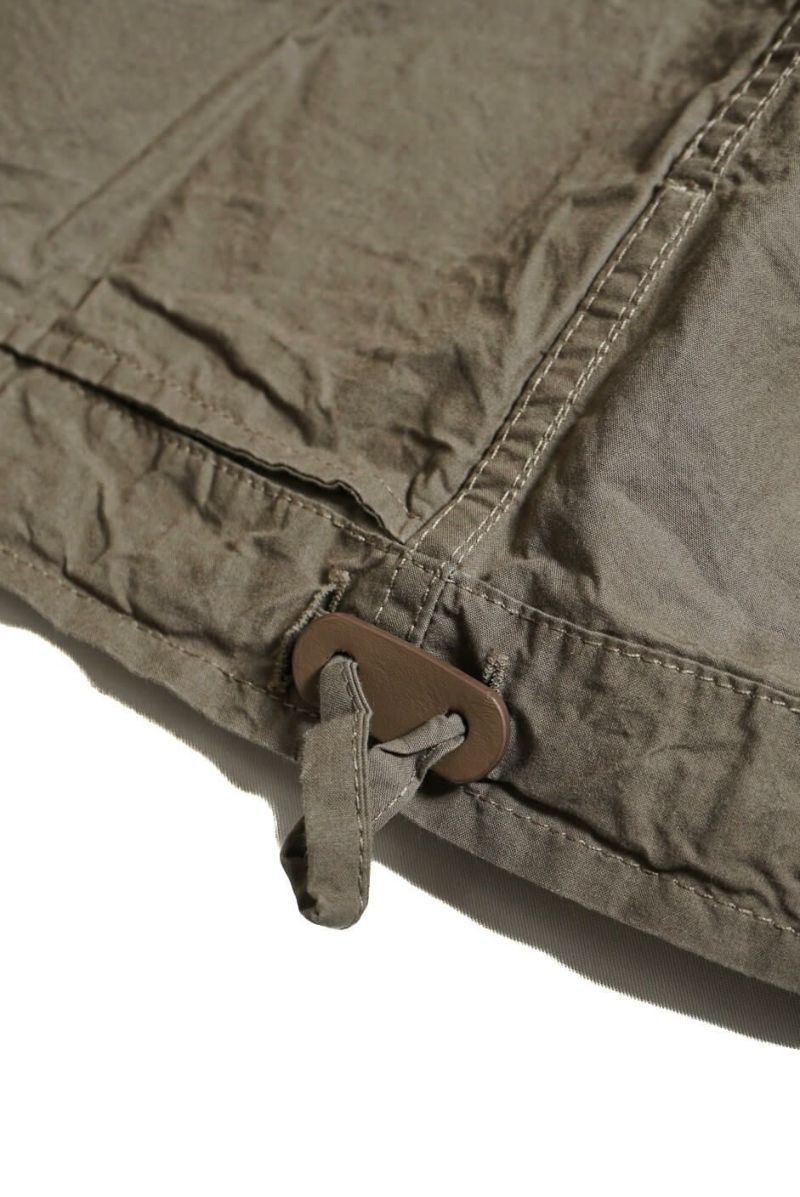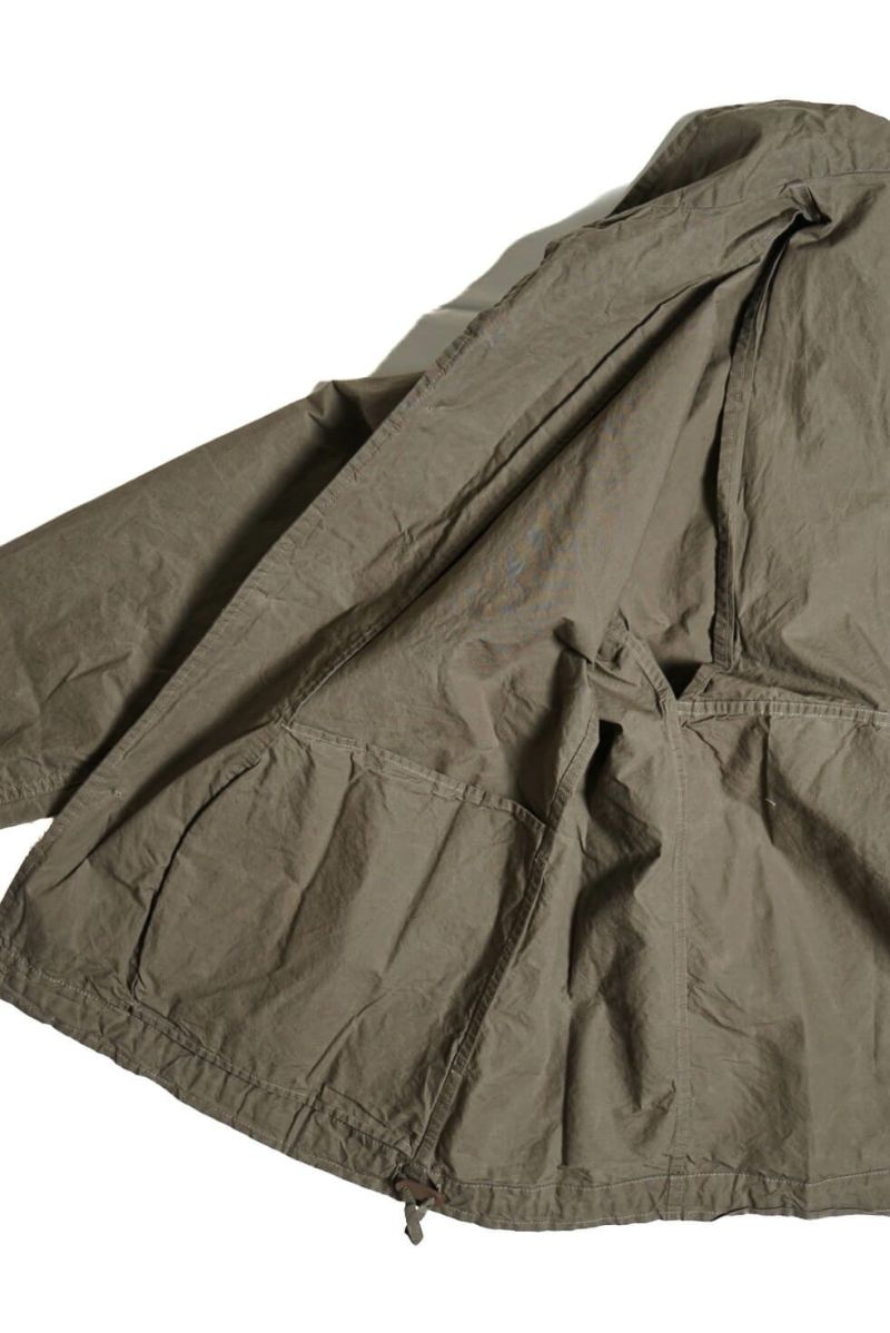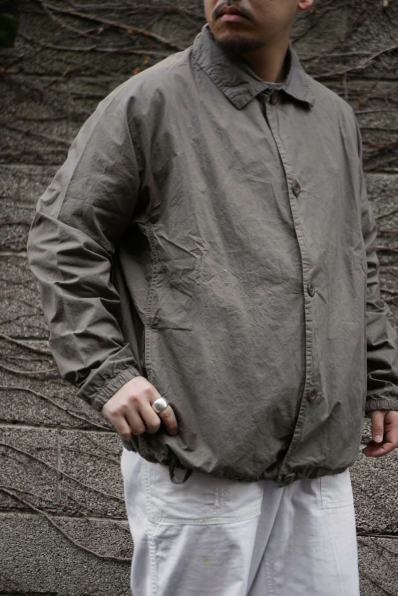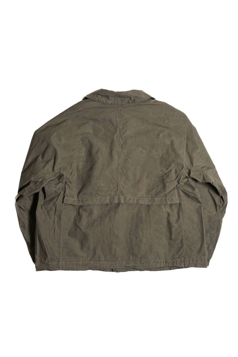 ライトワックスコットンを使用したブルゾン型ジャケットです。ゆったりとしたシルエットにドルマンスリーブ、背面のヨークが特徴的。袖口は伸縮性のある仕様で、裾はドローストリングで絞ることができます。仕上げに洗い加工が施されており、ワックスコットンでありながらドライな肌触り。