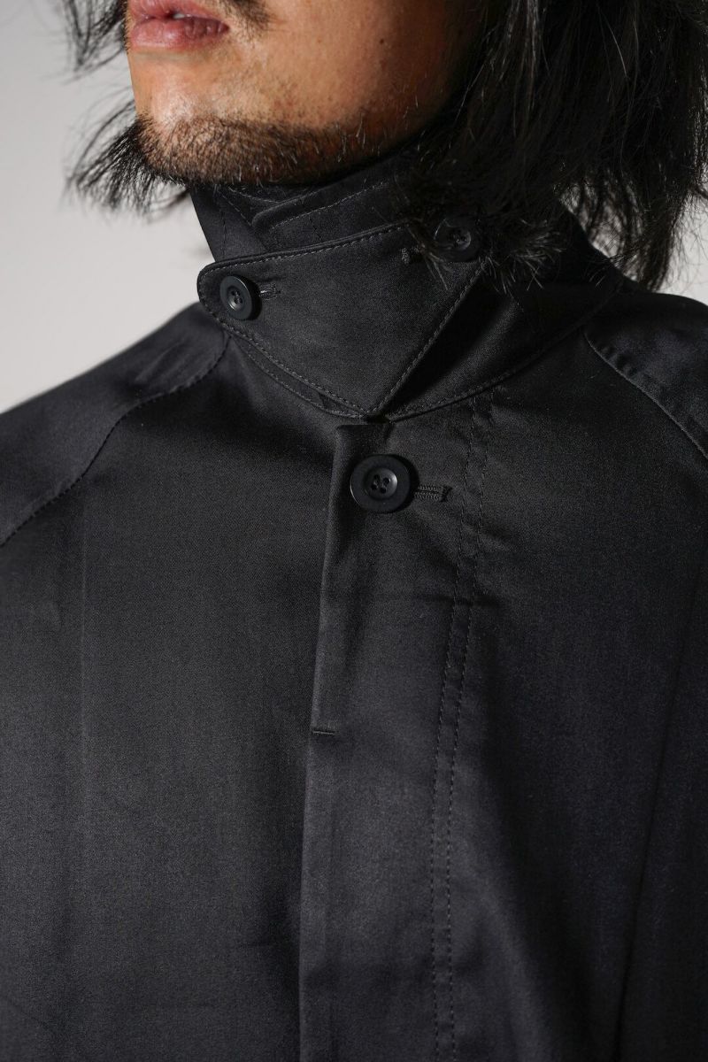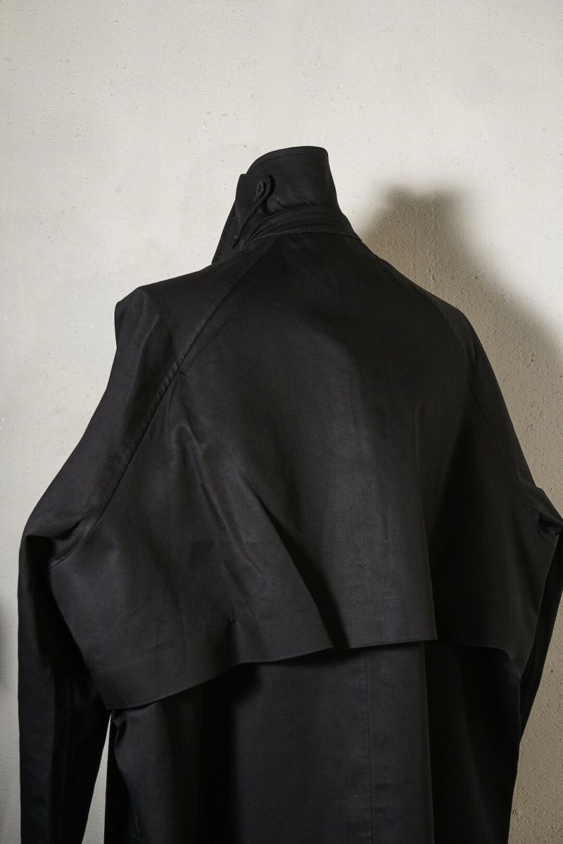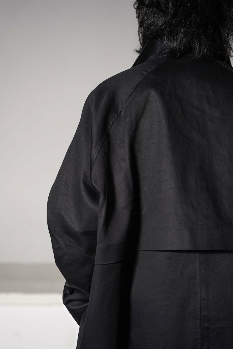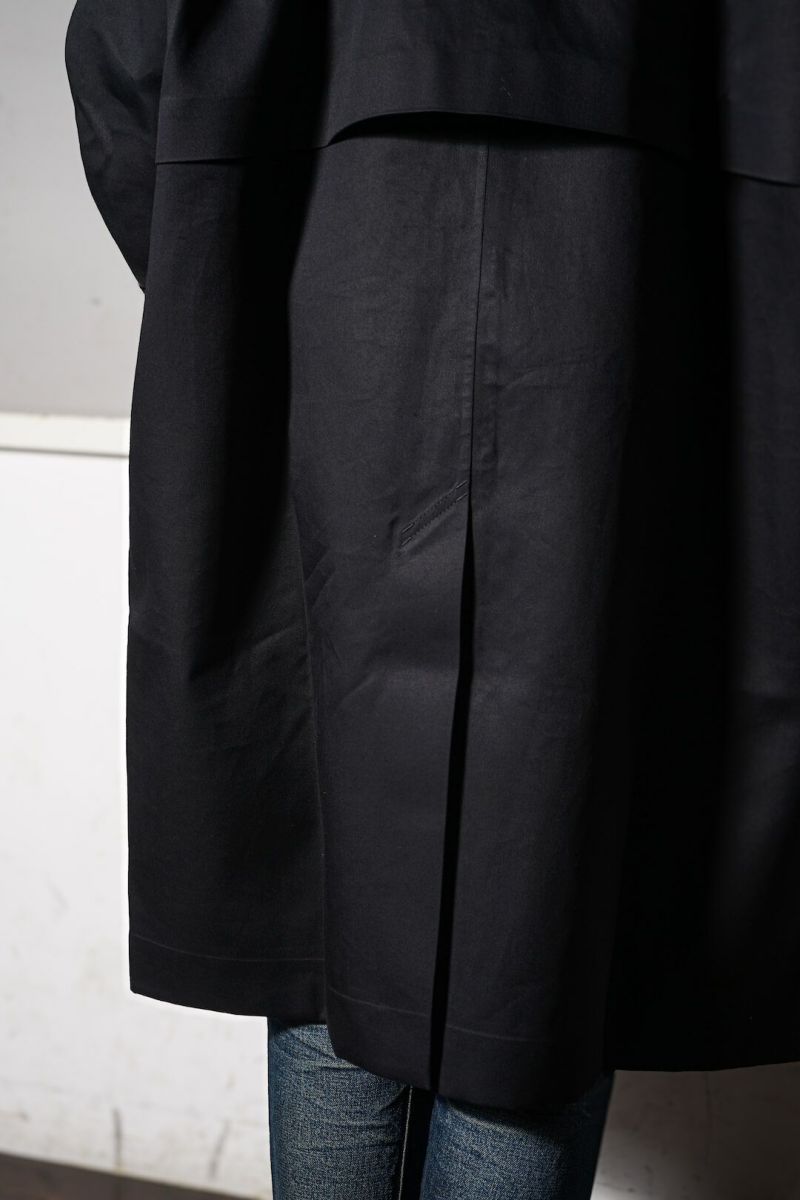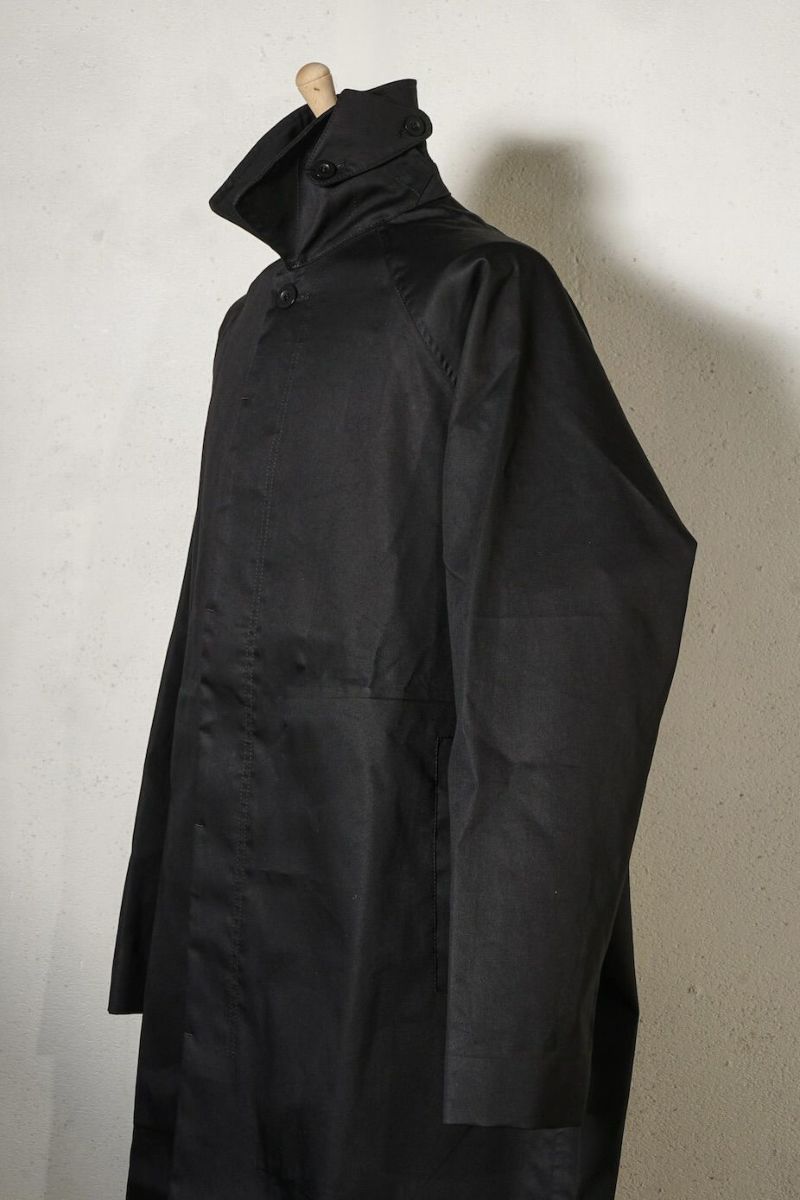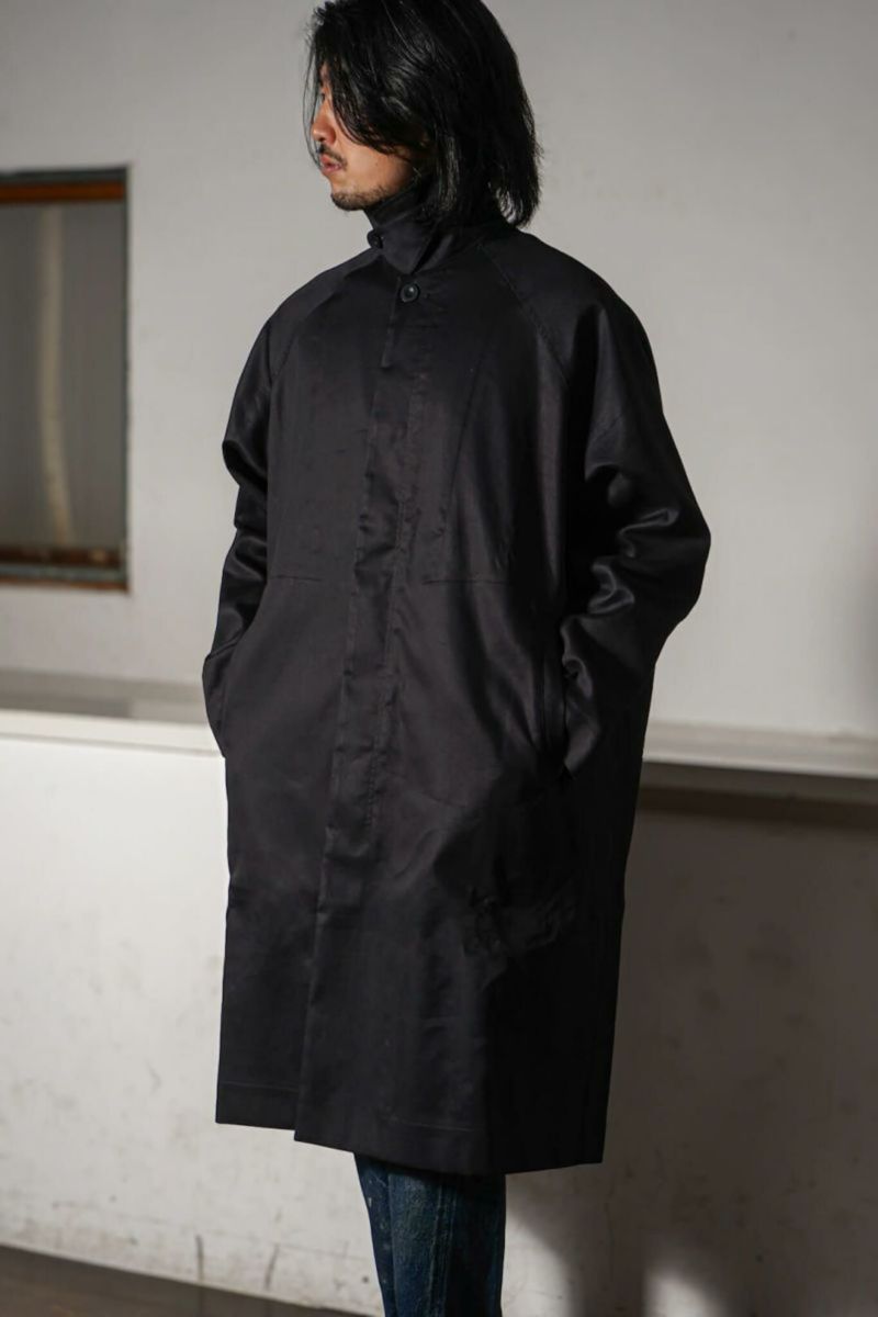 天然の撥水性を備えた高密度コットンキャンバスを使用したマックコート。ラグリンスリーブ、リラックスしたドレープ感、比翼仕立てのフロント仕様のスタイリッシュな1着です。裏地はありませんが、縫い目にはシームテープが配されており、軽量ながら保温性、撥水性に優れています。コットンキャンバスならではのエイジングも楽しみなコートです。