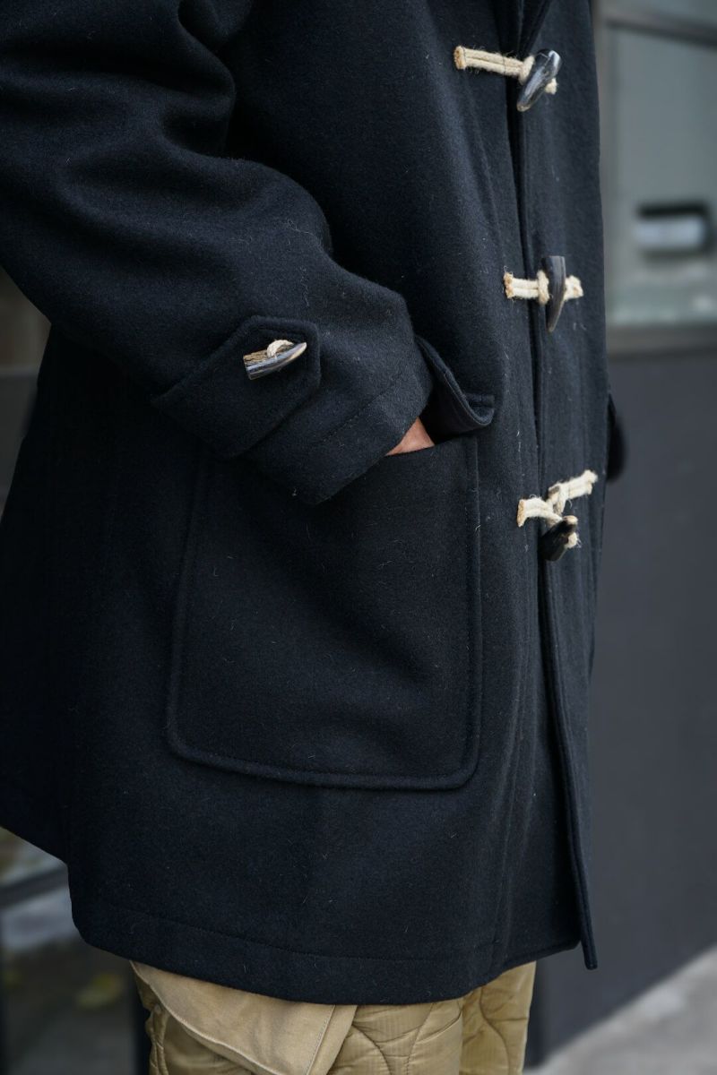 限りなくブラックに近いネイビーの色合いは、このコートのデザイン、仕様に最もマッチしており、私たちが理想とするダッフルコートの姿に限りなく近づいていると考えます。