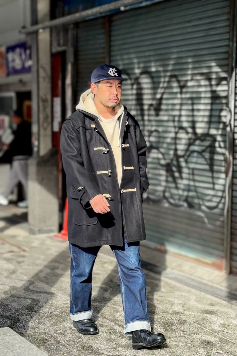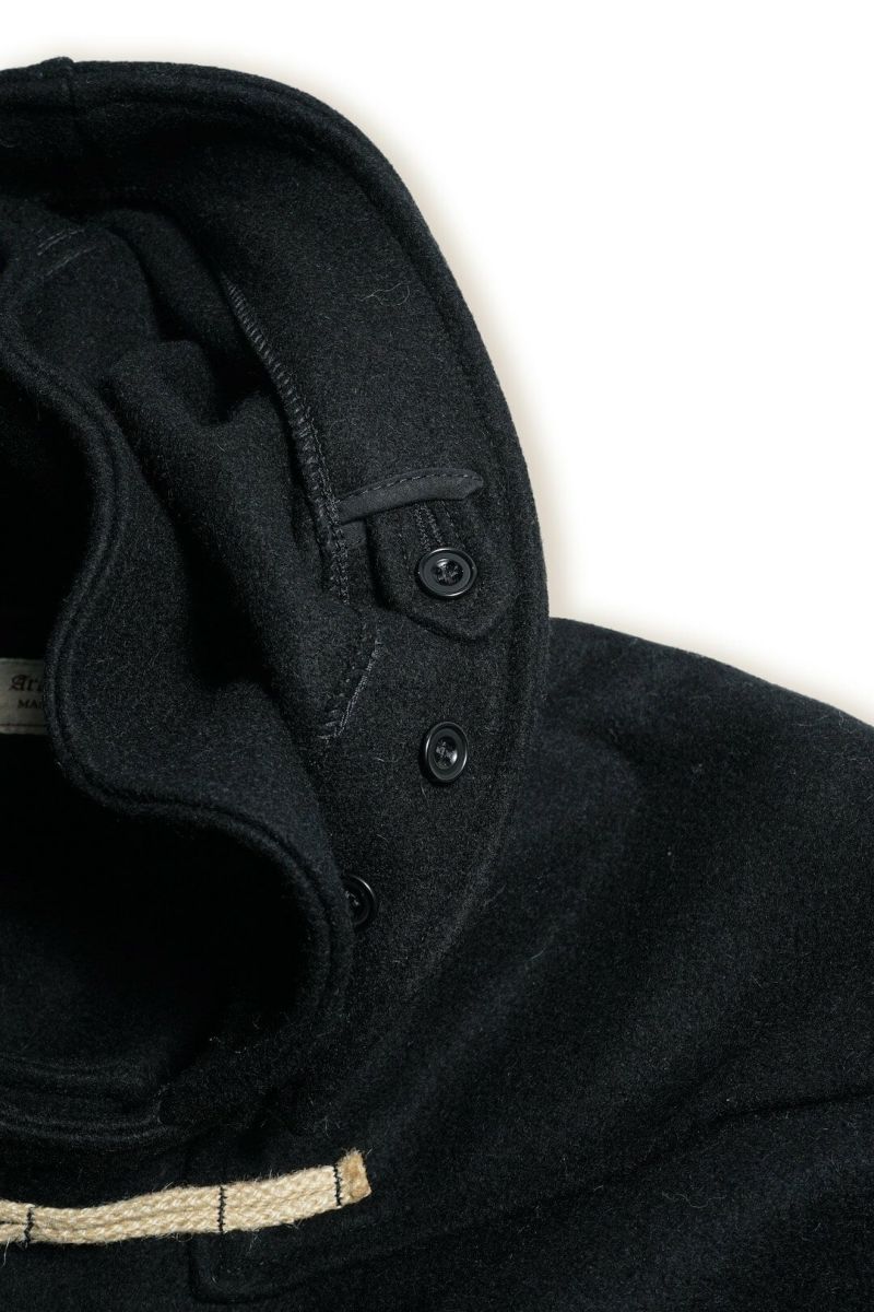 当時のオリジナルと、1940年代ROYAL NAVY物のデザインを踏襲し、あえて現代的なアレンジは施さずにオリジナルをリスペクトしたパターンメイキングにて製作いたしました。ダッフルコート=優等生、というイメージが日本では浸透していますが、本来は漁師や英海軍の作業着(ワークウェア)というルーツを持つ、質実剛健な男らしいコートである、という立ち位置を大事にしています。