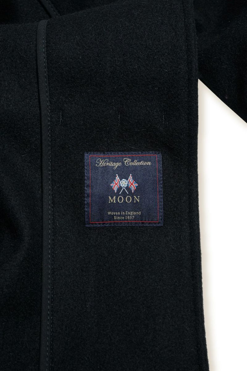 ダッフルコートの要となる生地は、1837年創業と英国に現存する最も古いウーレンミルであり、紡績から仕上げまでを一貫して自社で行っているABRAHAM MOON(アブラハム・ムーン)社製。 1940年代にBRITISH RAILWAYやFIRE SERVICE等で採用されていた"BRITISH STANDARD"と呼ばれる、厳格な基準のもとに織られた高密度ウールメルトン(970g/㎡)を現代に復刻させた生地を採用しました。