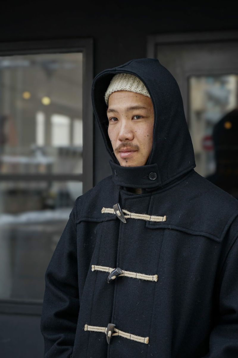 限りなくブラックに近いネイビーの色合いは、このコートのデザイン、仕様に最もマッチしており、私たちが理想とするダッフルコートの姿に限りなく近づいていると考えます。