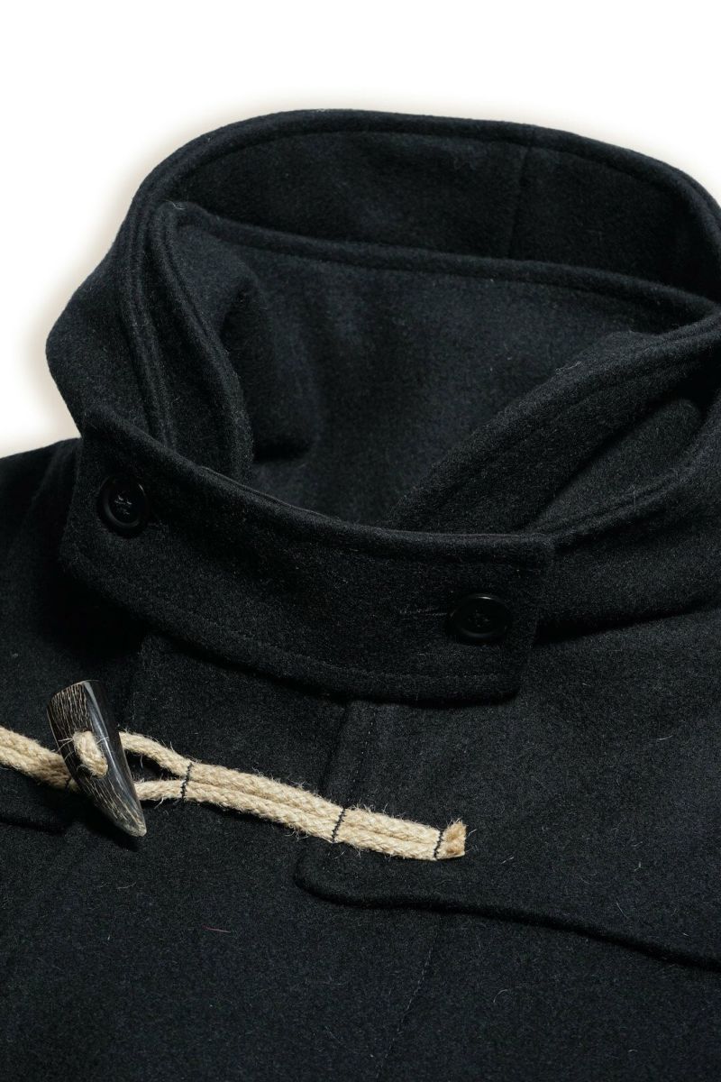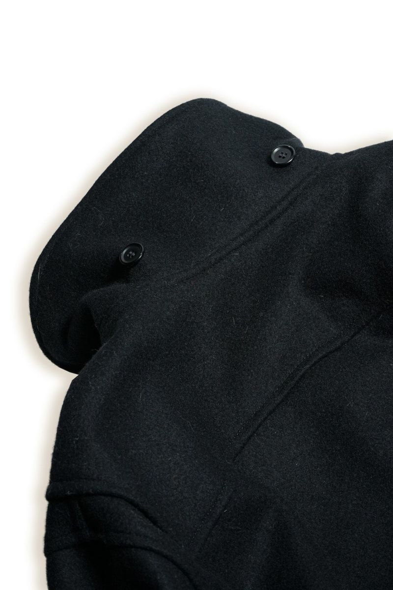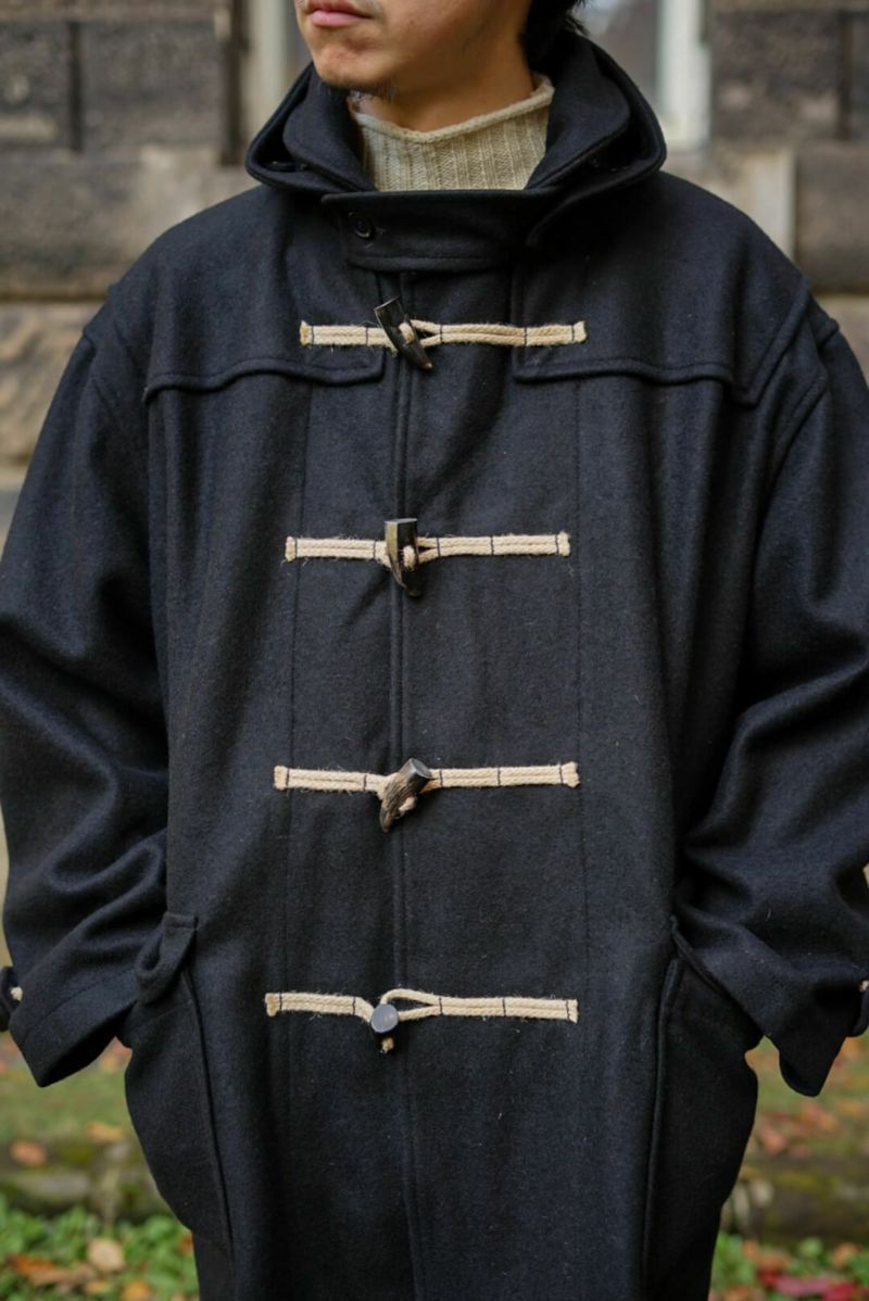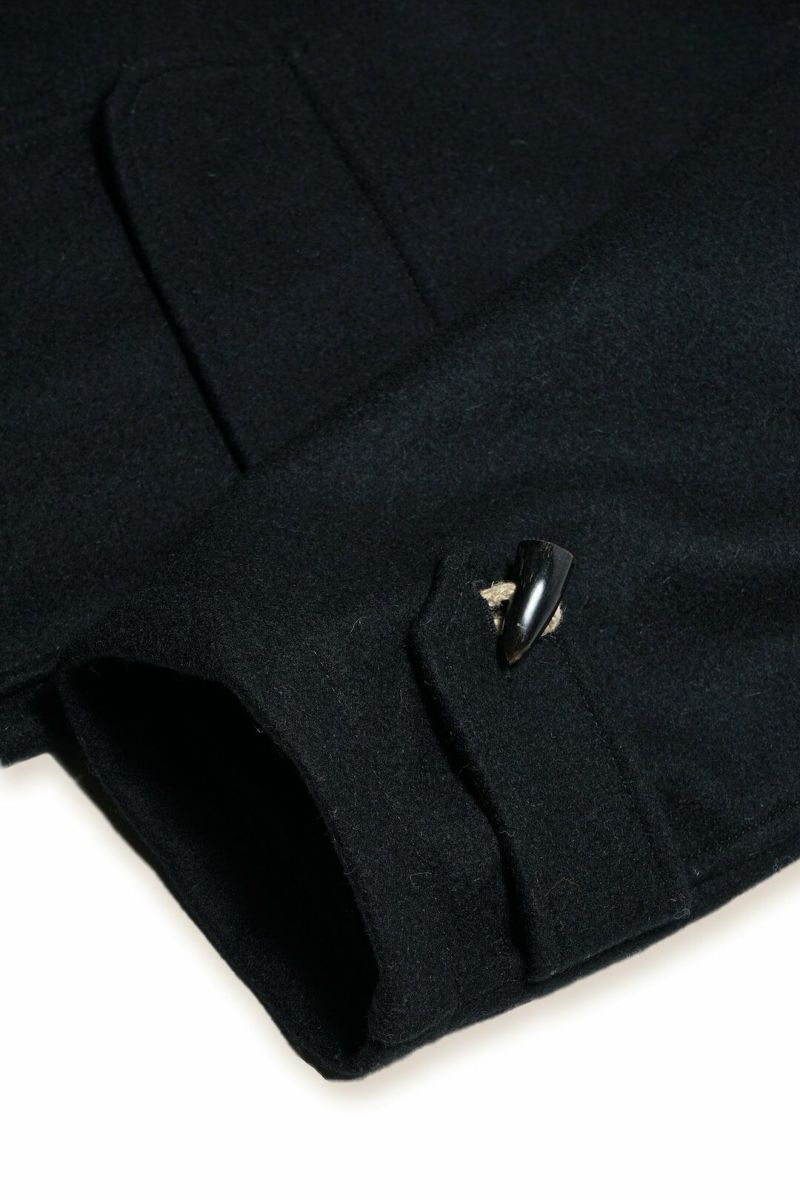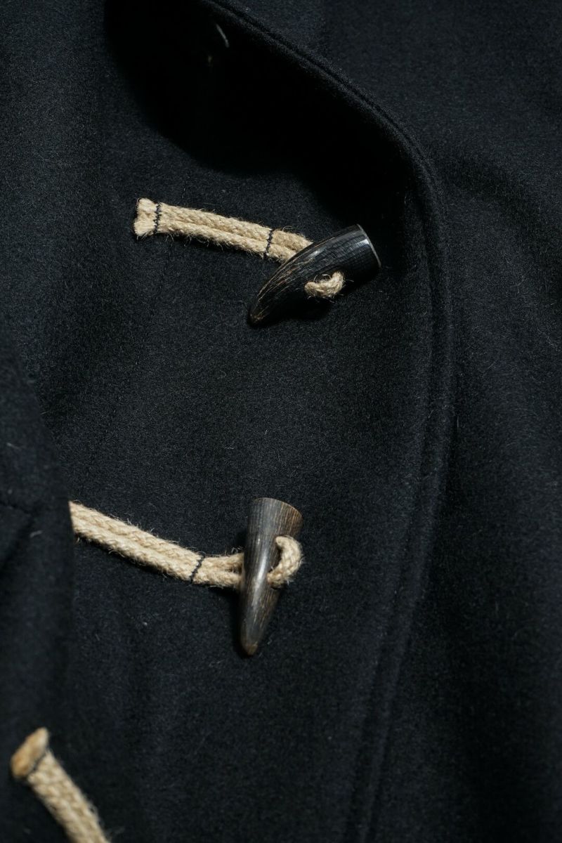 当時のオリジナルと、1940年代ROYAL NAVY物のデザインを踏襲し、あえて現代的なアレンジは施さずにオリジナルをリスペクトしたパターンメイキングにて製作いたしました。ダッフルコート=優等生、というイメージが日本では浸透していますが、本来は漁師や英海軍の作業着(ワークウェア)というルーツを持つ、質実剛健な男らしいコートである、という立ち位置を大事にしています。