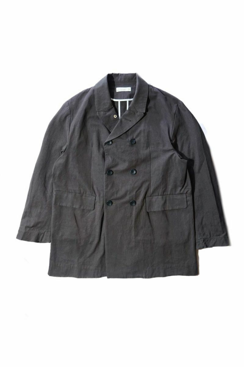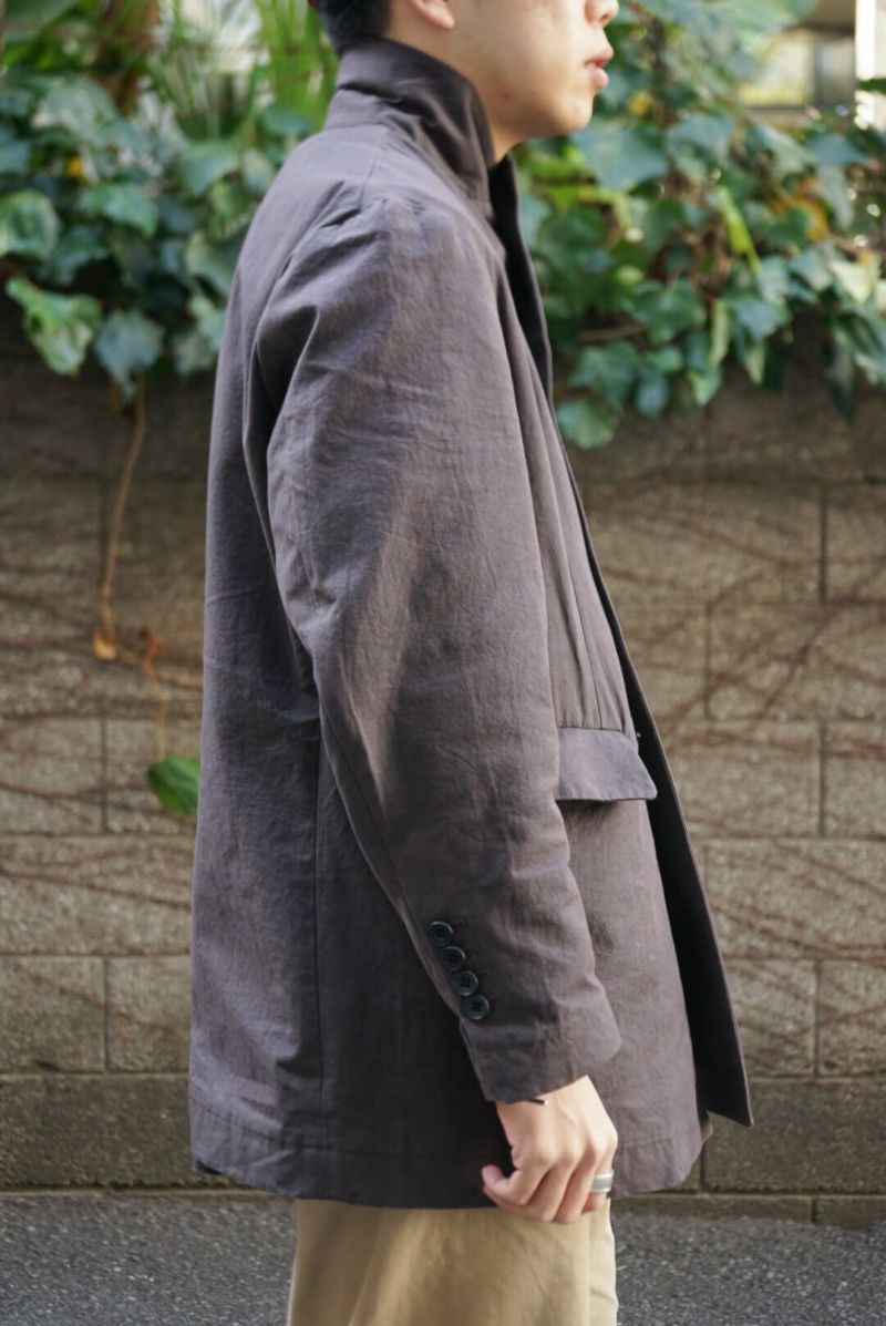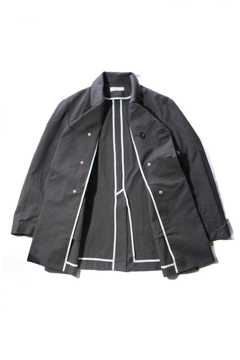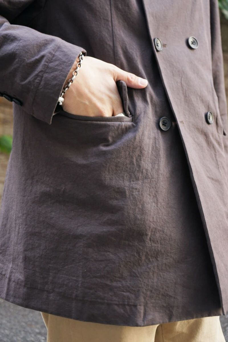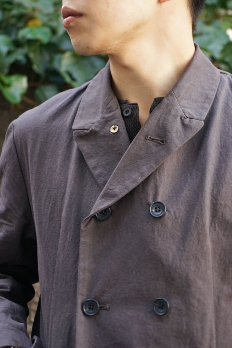rdv o globeからTRISTAN VE.をリリース。素材にはコットンのドビークロスに後染めを施しております。天日干しにより自然なシワ感となりドライな手触りが特徴です。ダブルのデザインに特徴的なラペルにはレザーの力釦などデザインのアクセントとなっております。1枚仕立てで、3シーズン着られる素材感です。