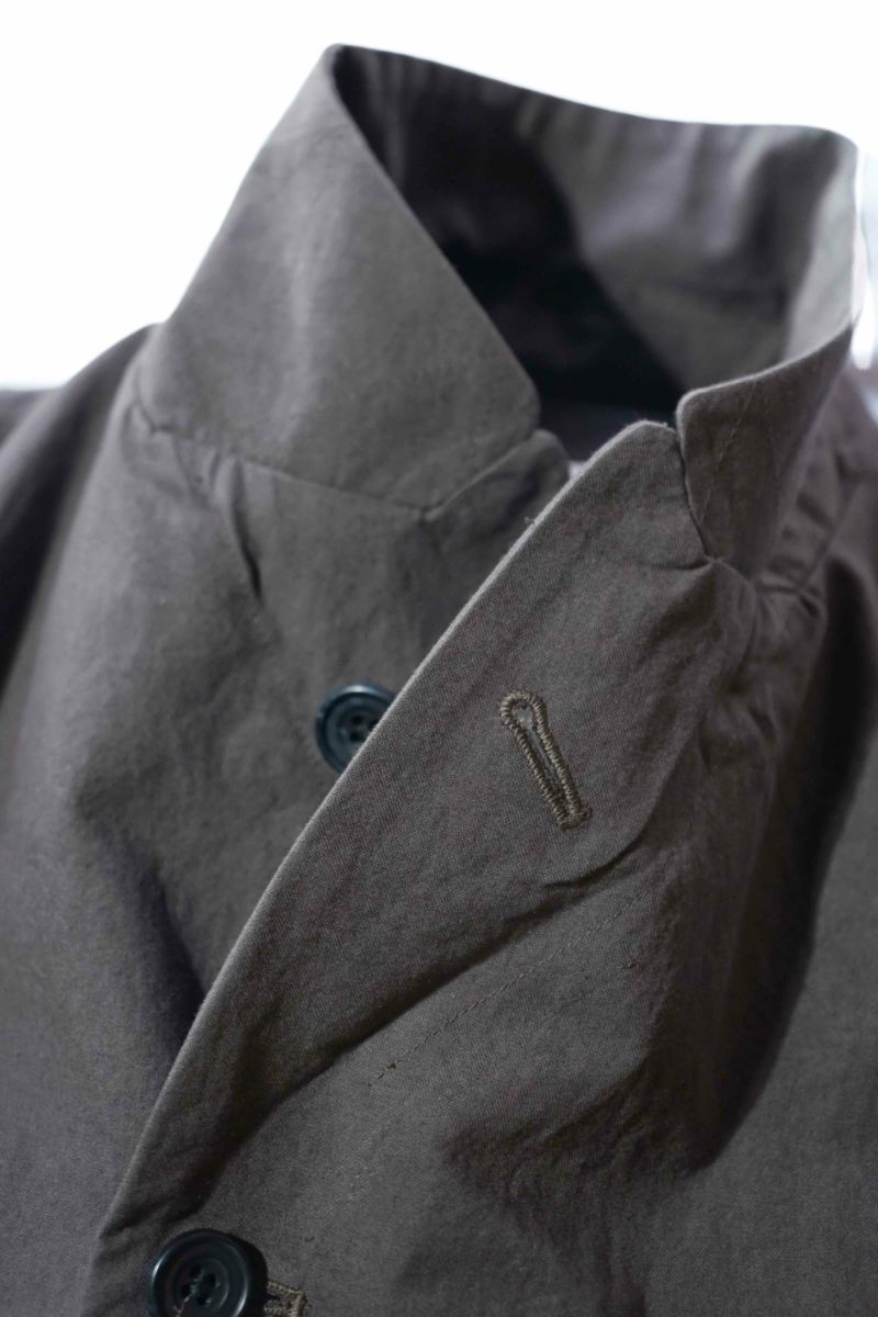 ヴィクトリアンスタイルにミリタリー、ワークといったディテールを加え、いまの時代に合ったシルエットをつくり上げ、素材、縫製から全てジャパンメイドに仕上げている。