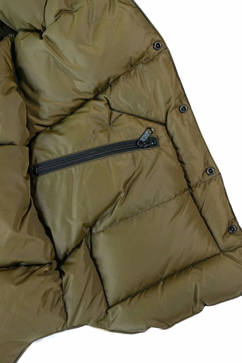 表地・裏地にはRocky Mountain Featherbed復活時に開発した70デニールのオリジナル・ナイロンタフタを使用。ヴィンテージを研究し忠実に復刻したこのナイロンタフタは、ダウンパックの機能を持ち合わせており、この3層構造により、軽さ、保温力が格段にUP。