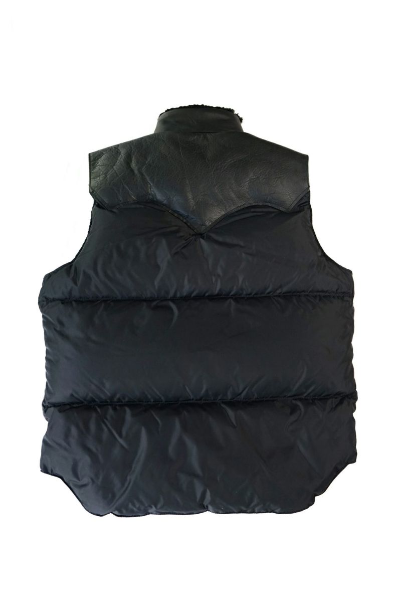 Rocky Mountain Featherbedのオリジナルアイテム、クリスティーベスト。一枚裁ちのヨークレザーと襟の天然ムートンが特徴的なモデルです。