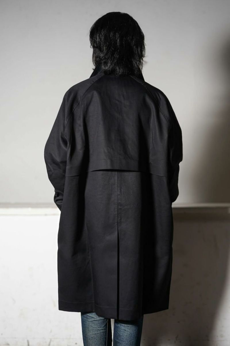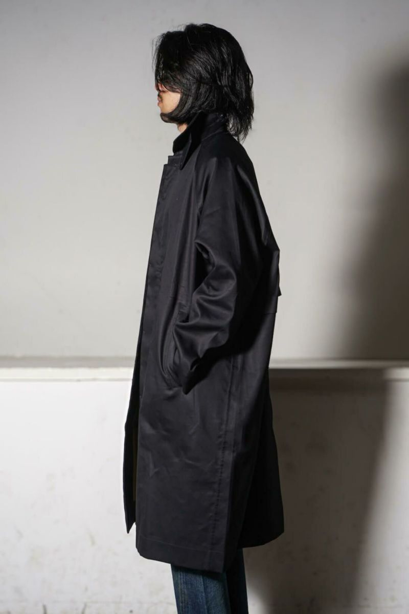 天然の撥水性を備えた高密度コットンキャンバスを使用したマックコート。ラグリンスリーブ、リラックスしたドレープ感、比翼仕立てのフロント仕様のスタイリッシュな1着です。裏地はありませんが、縫い目にはシームテープが配されており、軽量ながら保温性、撥水性に優れています。コットンキャンバスならではのエイジングも楽しみなコートです。
