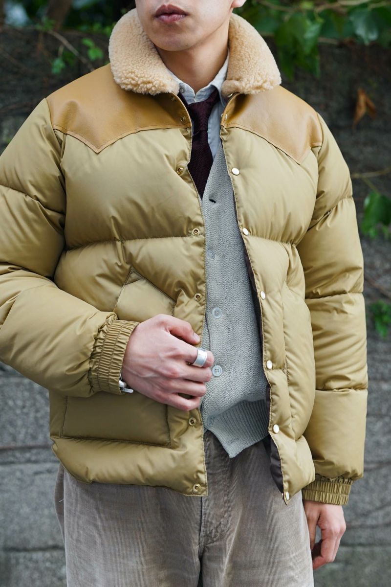 1960年代後半、Rocky Mountain Featherbed(ロッキーマウンテンフェザーベッド、以下RMFB)は、アメリカ・ワイオミング州(俗称カウボーイ・ステイツ)のジャクソンホールで産声を上げる。 ネイティブアメリカンの英知が生み出したレザーケープを参考に、継ぎ目の無い一枚革を使ったウエスタンヨークをアイコンとしたカウボーイ向けのウェアが完成。 それが羽毛布団(FEATHERBED)のような防寒性、保温性を保証するダウンベストであった。 残念ながら1980年代後半にブランドは消滅してしまうが、復活。 一枚断ちのレザーヨーク、天然ムートンを使用した襟など、確かな価値を受け継ぎつつ、さらに“現代”というエッセンスを加え、他に類を見ない贅沢な製品を生み出しています。 そして今なお、世代を超えて世界中の人々を魅了し続けています。