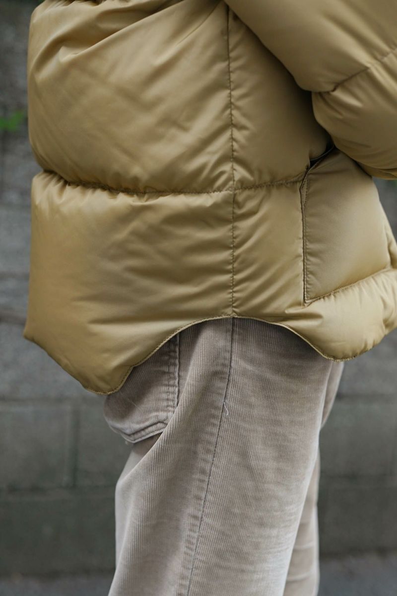 表地・裏地にはRocky Mountain Featherbed復活時に開発した70デニールのオリジナル・ナイロンタフタを使用。ヴィンテージを研究し忠実に復刻したこのナイロンタフタは、ダウンパックの機能を持ち合わせており、この3層構造により、軽さ、保温力が格段にUP。