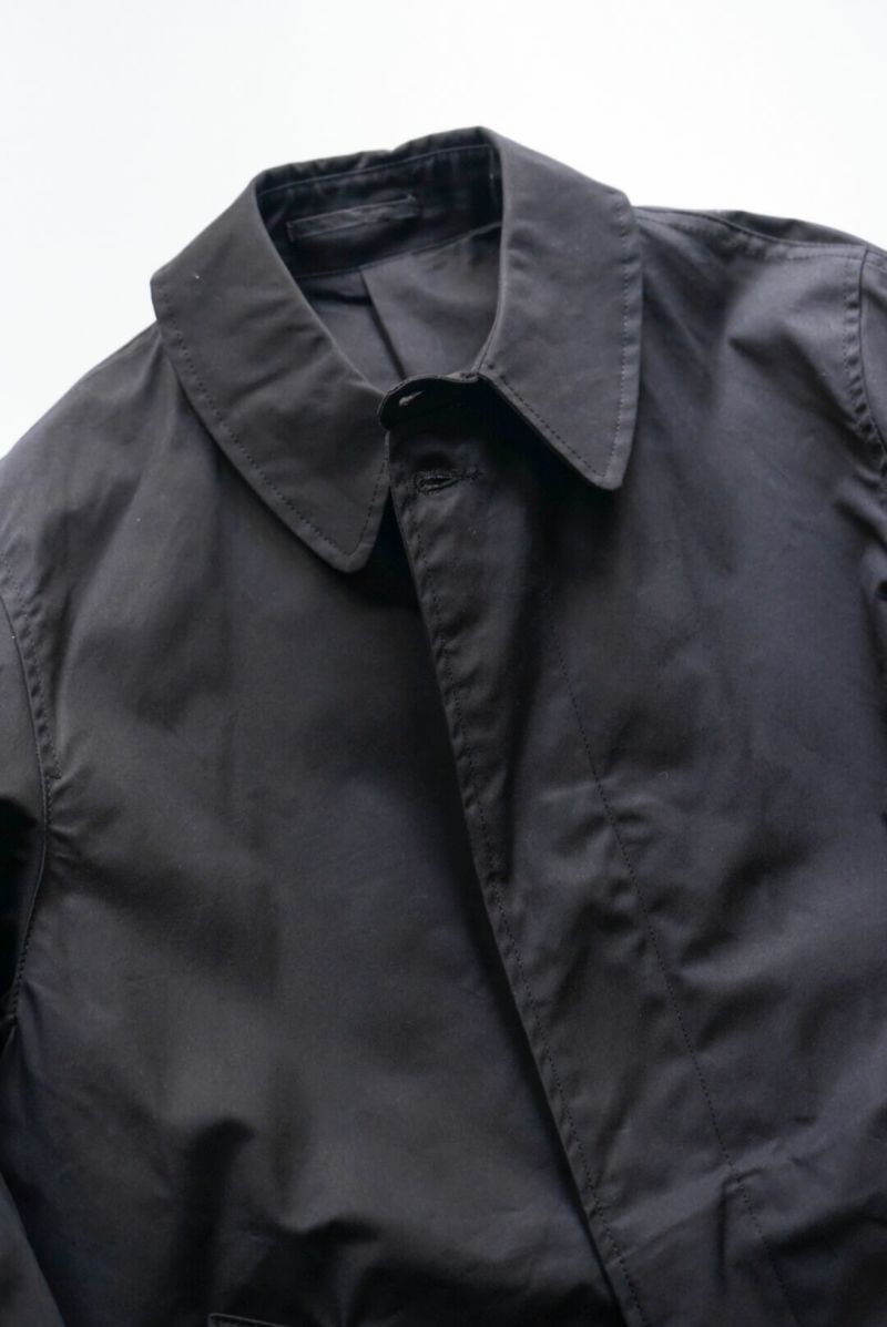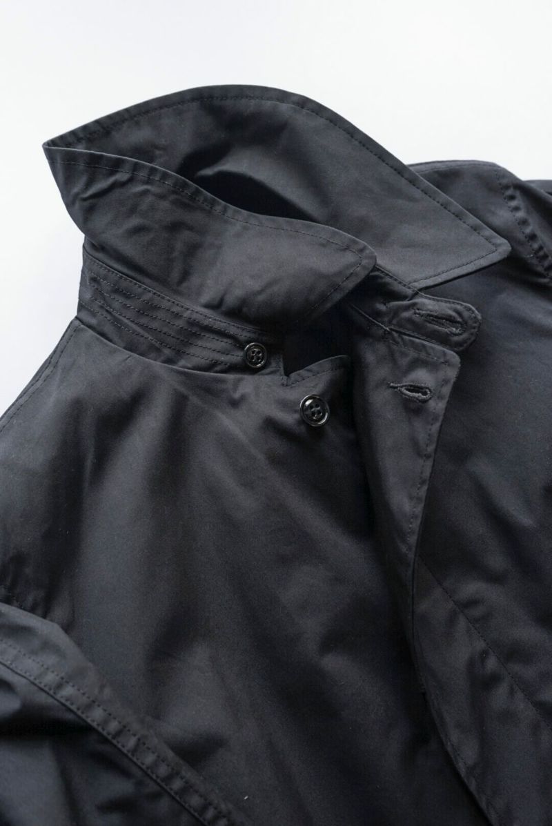 様々な気象条件に対応できる耐水性、耐久性を備えた全天候型のコートとして開発された1970年代の”US NAVY ALL WEATHER COAT”をベースに、MSG & SONSなりの解釈を加え”MADE IN USA”にて製作。比翼仕立てのフロントに無駄のないすっきりとしたシルエット、そのシルエットを最大限に活かした「スプリットラグラン」仕様(前身頃がセットインスリーブ、後身頃がラグランスリーブになった袖付け)が特徴です。