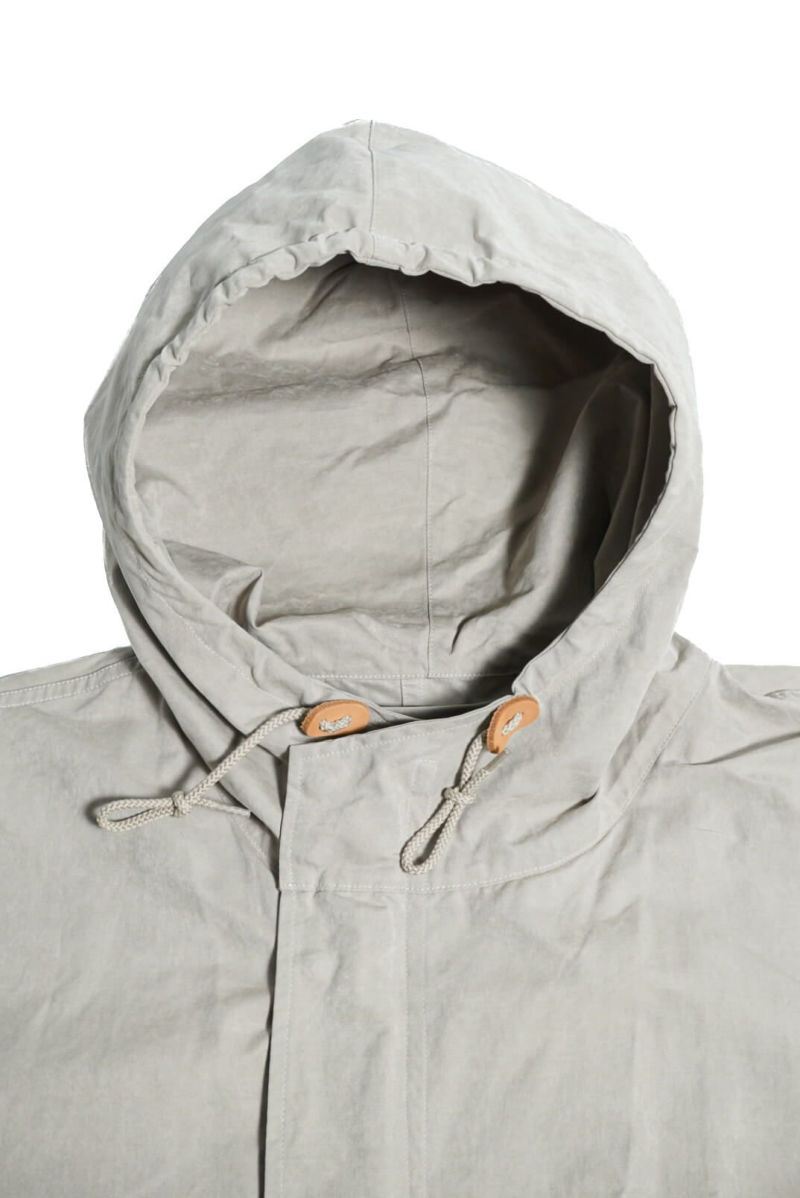 素材には、英国の老舗アウターブランドや各国のメゾンも採用している、名門、イタリア・OLMETEX(オルメテックス)社の生地を採用。経糸にポリエステルナイロン、緯糸にコットンを高密度に織り込んだ生地は、優れた撥水性と防風性を持ちながらも、マッドな風合いとナチュラルな素材感が魅力的です。