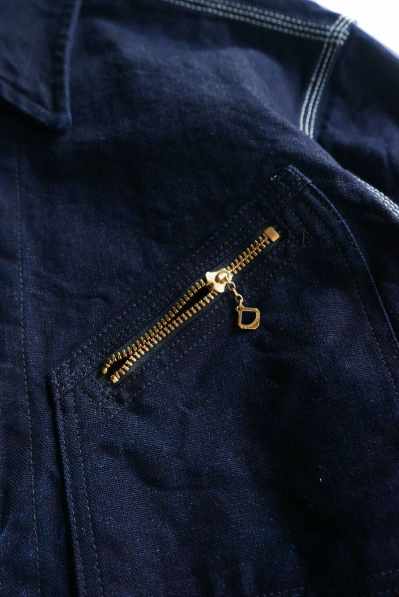 ヴィンテージデニムワークジャケットの名品をBONCOURAというフィルターを通して再構築。生地は本リミテッドの為に新たに製作したオリジナルインディゴダック。一般的なダック素材は生地染めされているものが多い中で、まず経糸緯糸からロープ染色でインディゴ染色をおこない、デニムと同じインディゴ染中白生地を採用しています。