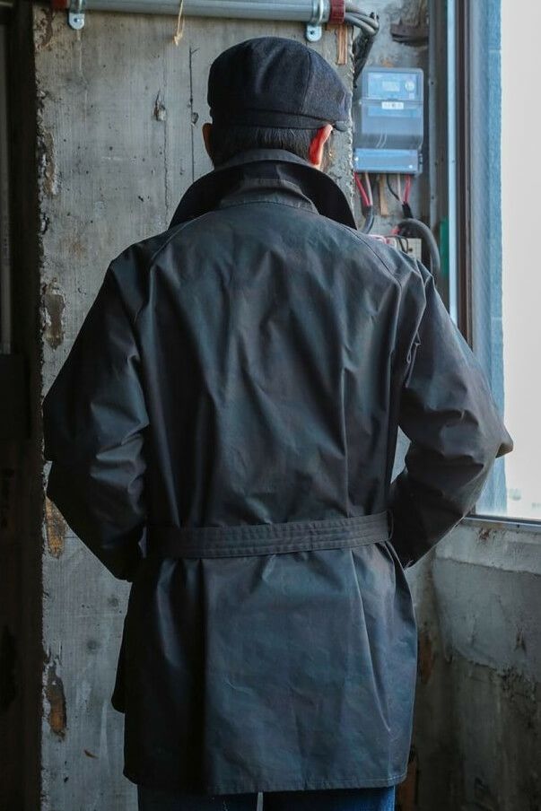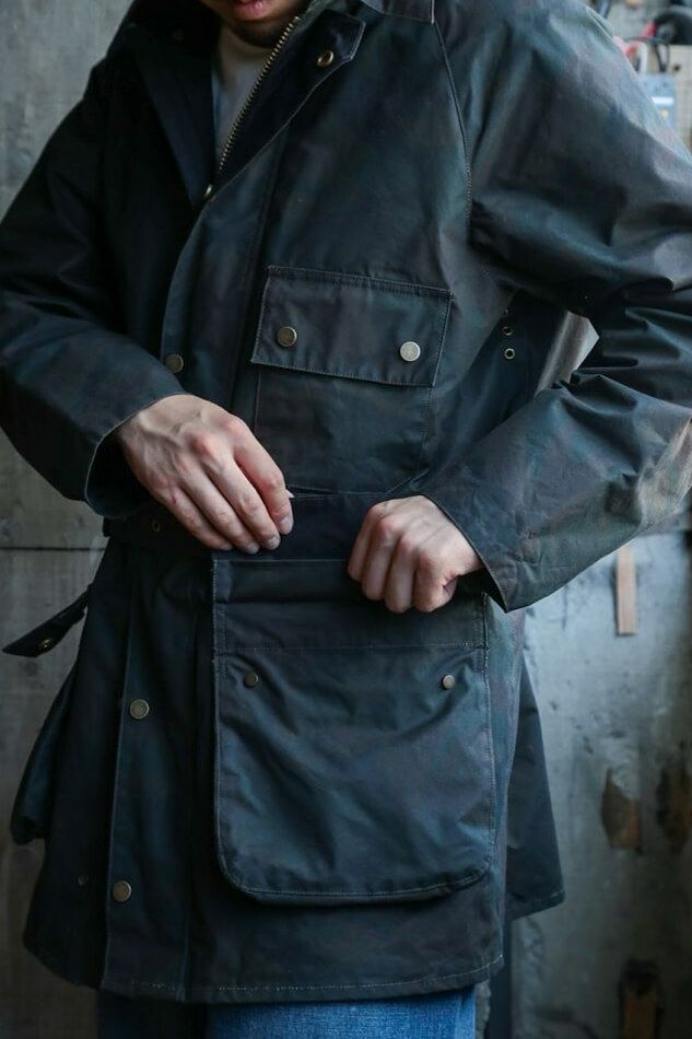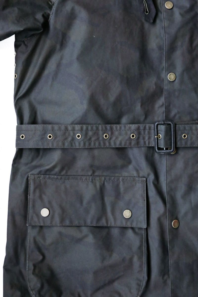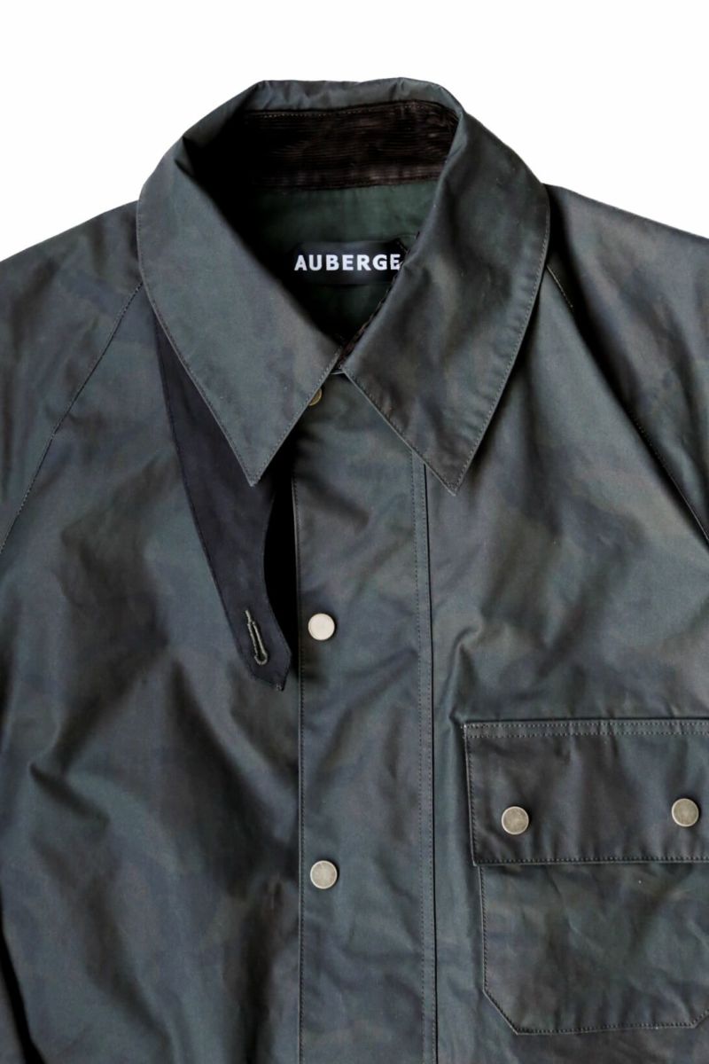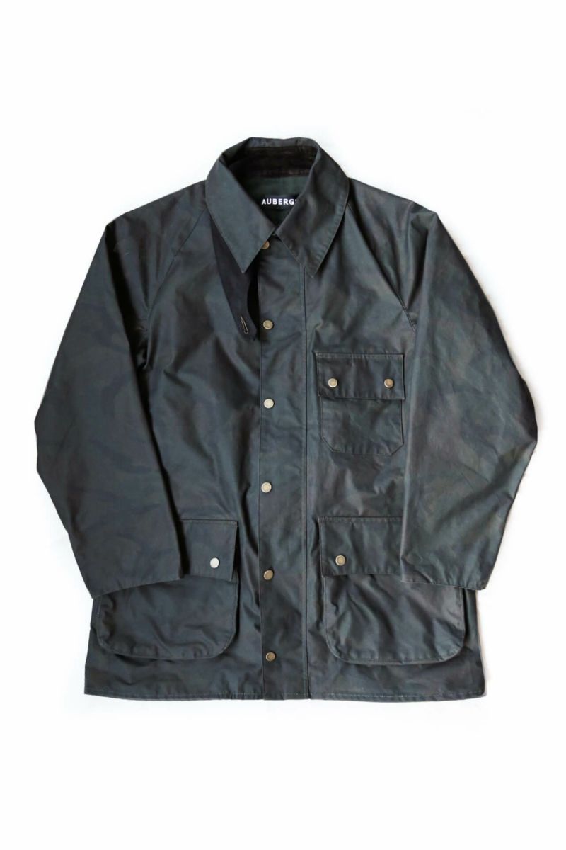 英バブアー社が80年代の数年間のみ生産していたDPM迷彩が使われていたソルウェイジッパー型がベースのFALKLAND CAMO。ややゆとりのあるシルエットになっています。AUBERGEクロスに60年代のDPM柄を顔料でプリントした後、色を加えたオイルを含浸させリプルーフ染めとも言えるようなシャドウ加工を施しているので、深く落ち着きのある印象を受けます。