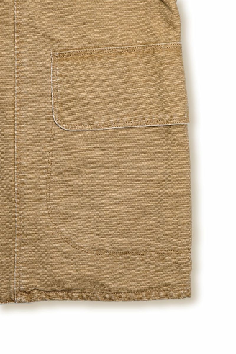 ビンテージのハンティング・フィールドコートをリプロダクションしたジャケットです。シンプルながら特徴的なデザインで、前身頃の独特な切り替えや、手が入れ易い真横に配置されたフラップ付きポケットがポイントです。初登場となる25FWコレクションでは、丈夫なワークウエア素材のコットンダックを使用し、裏地には暖かみのあるボーダーブランケットを採用。ビンテージコットンダックのリプロダクション生地は、ビンテージ特有のヨコムラの出方にこだわりっています。芯まで染まりきらない特殊染色により、味わい深い表情となります。