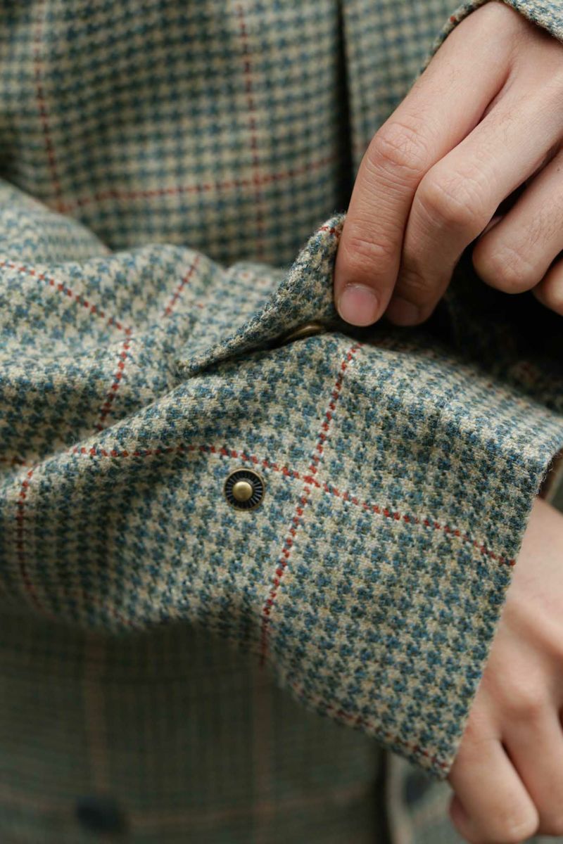 素材は、ツイードの発祥地とされるスコットランド・ホーウィックにて1868年に創立された「ラバット」社のツイード。襟のコーデュロイは、英国コットンミルの代表格BRISBANE MOSSを採用しています。