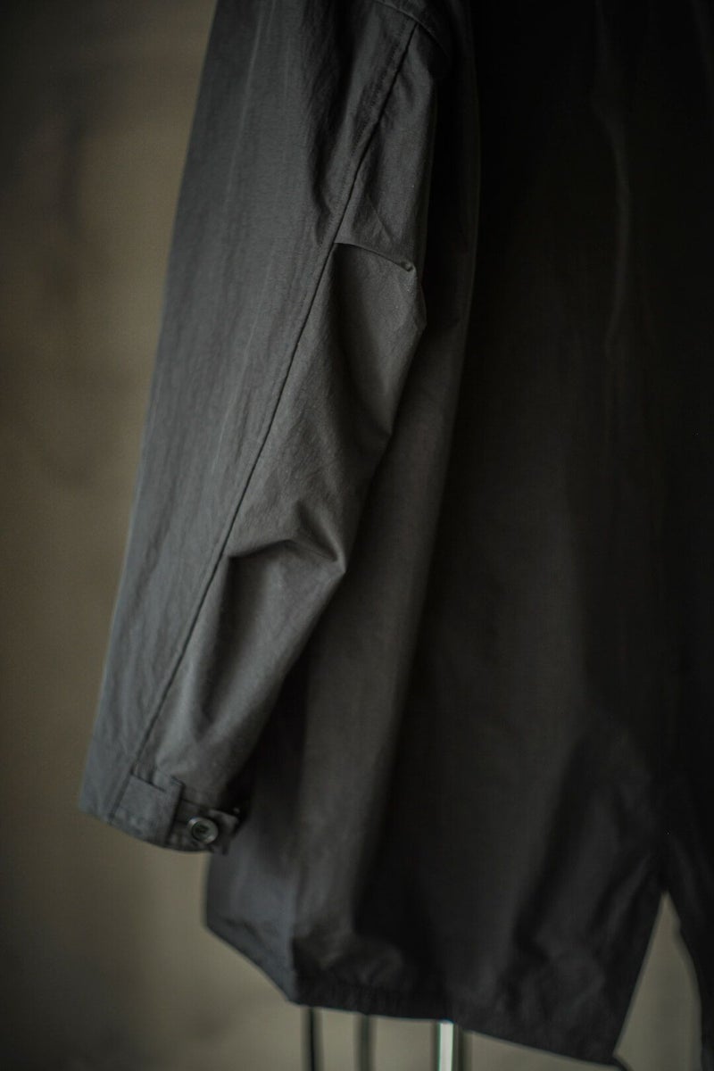 rdv o globが、ここ数年定番で提案しているSHORT FISHTAIL。 素材には、高密度のナイロンタフタに塩縮加工を施しております。 US ARMYに支給されていたミリタリーパーカをベースに、背面にはフィッシュテールのディテールを採用しています。 ゆったりとしたサイジングに丸みのあるシルエットは、rdv o globeらしいデザインです。