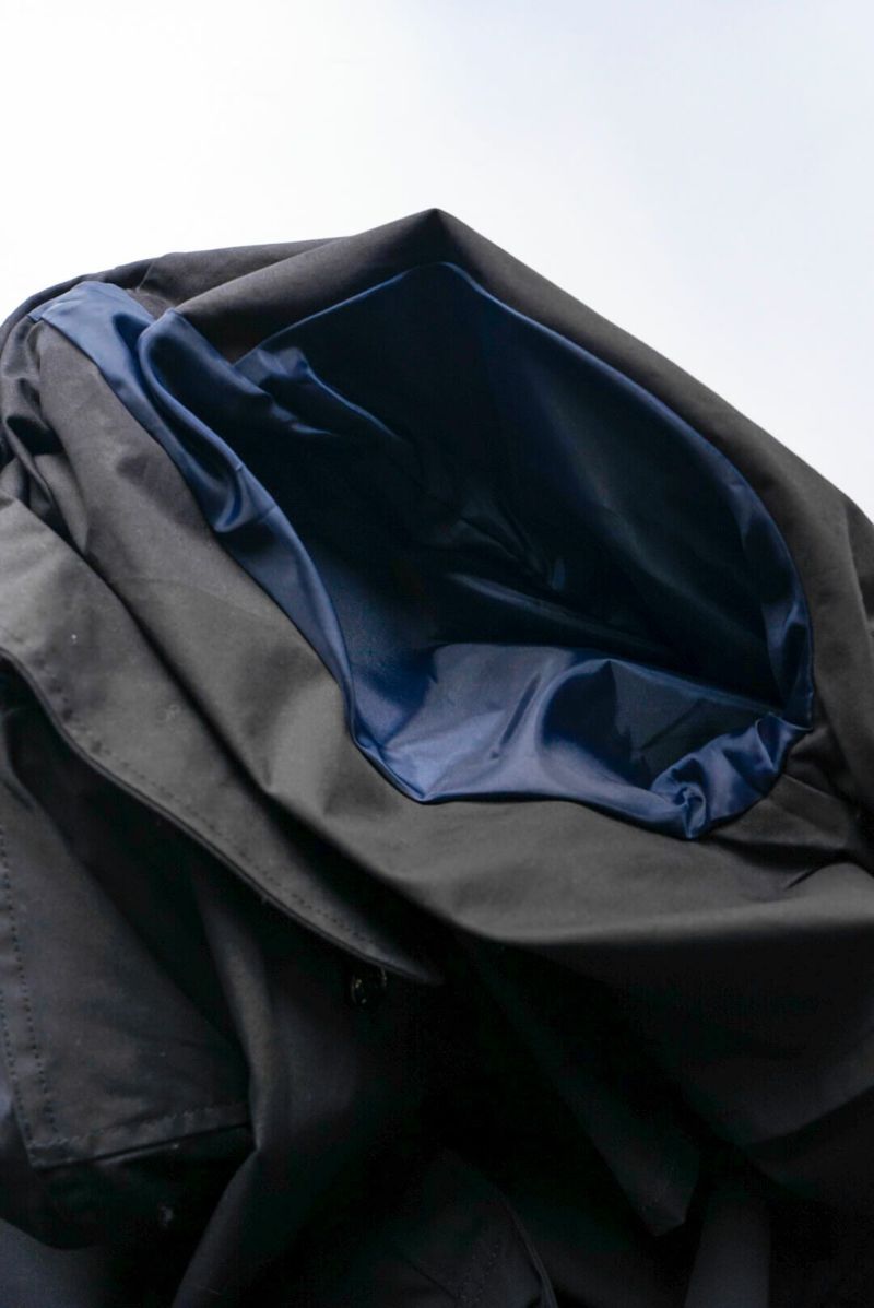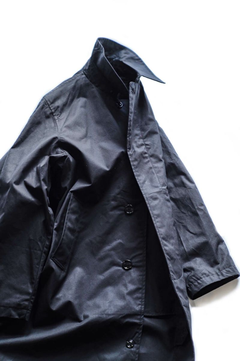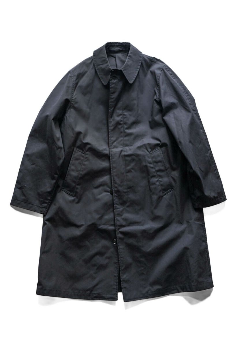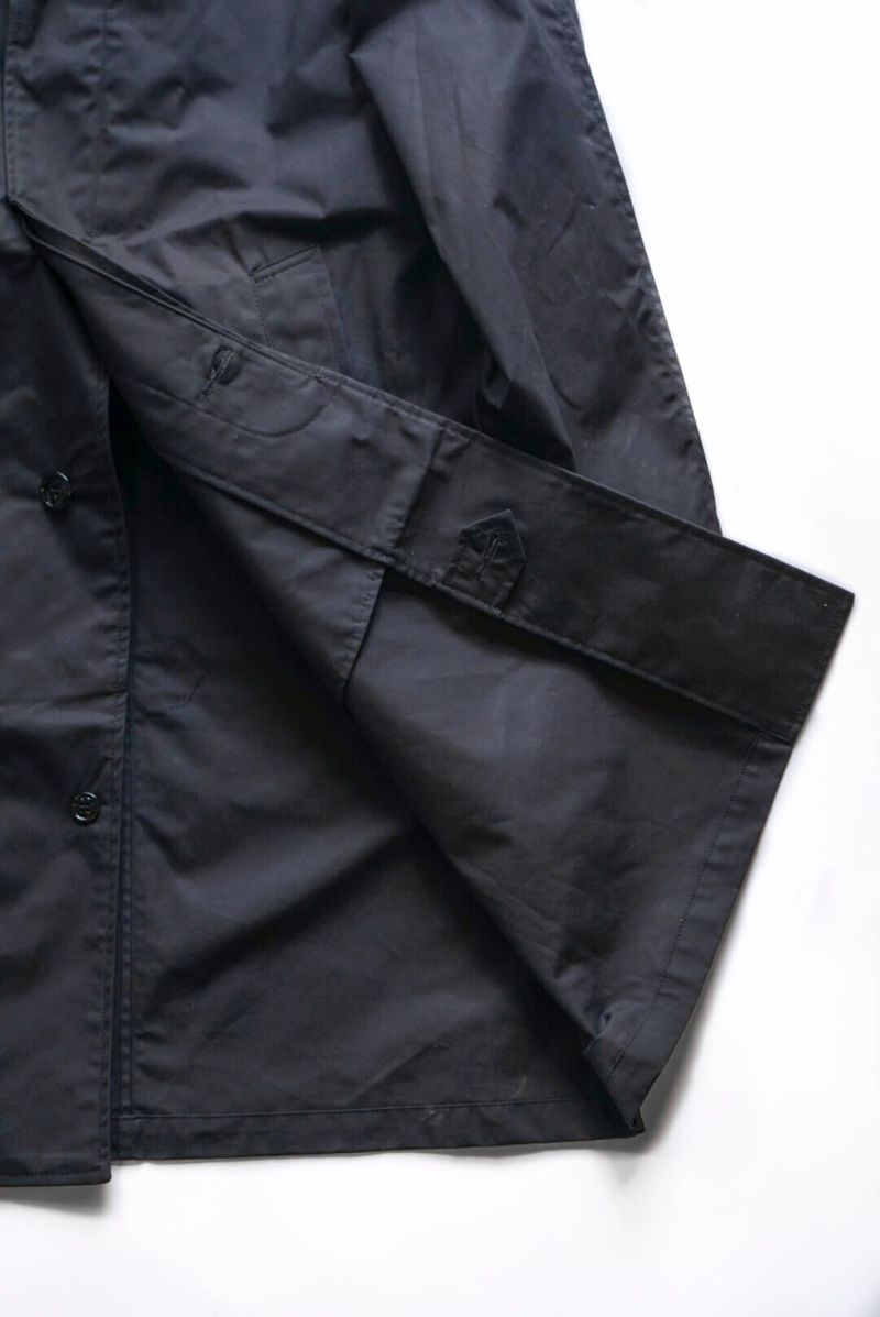 様々な気象条件に対応できる耐水性、耐久性を備えた全天候型のコートとして開発された1970年代の”US NAVY ALL WEATHER COAT”をベースに、MSG & SONSなりの解釈を加え”MADE IN USA”にて製作。比翼仕立てのフロントに無駄のないすっきりとしたシルエット、そのシルエットを最大限に活かした「スプリットラグラン」仕様(前身頃がセットインスリーブ、後身頃がラグランスリーブになった袖付け)が特徴です。