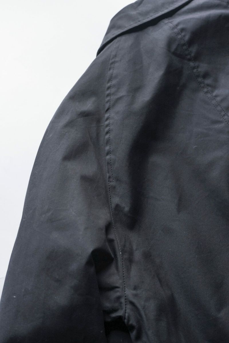 そして、このコート最大の特徴は生地にあります。80年代以降は防水性能の向上と需要拡大により、安価で安定供給できる綿ポリ素材へとシフトしていきますが、70年代後半までの”US NAVY ALL WEATHER COAT”には高密度に打ち込まれた綿100%素材が採用されていました。