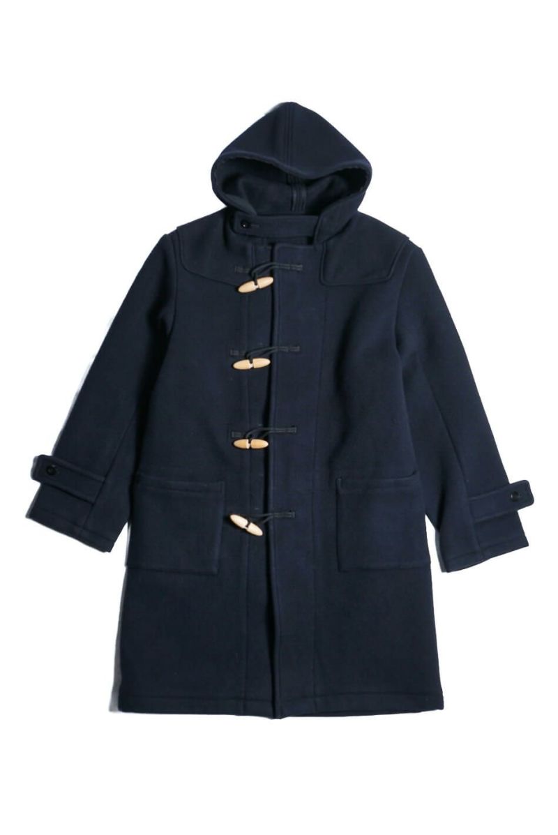 BONCOURAオリジナルカシミア混ネイビーメルトンを使用したダッフルコート。