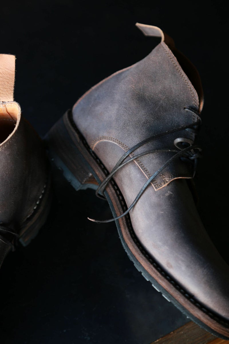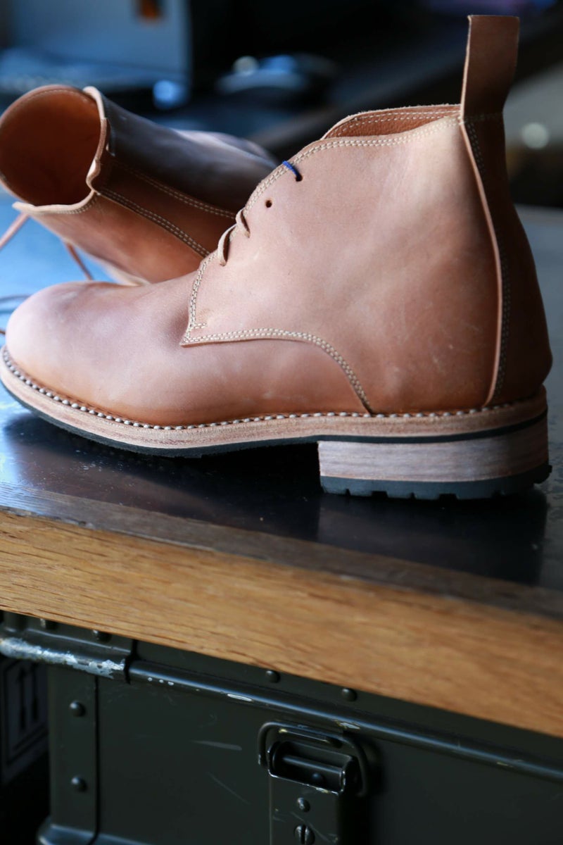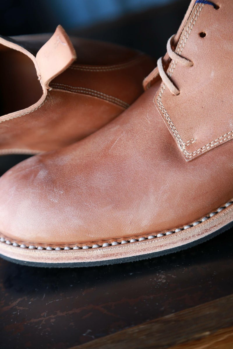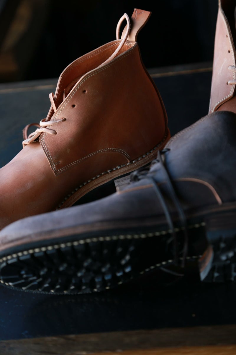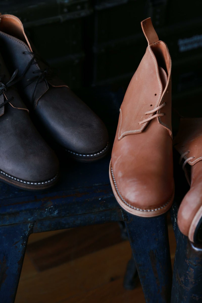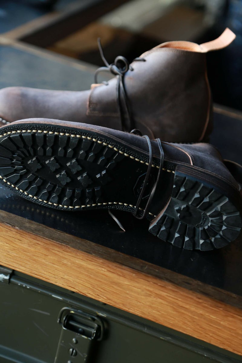 アウトソールにはビブラム社製の物を採用。グッドイヤー・ウェルテッド製法で作られているためソール交換も可能であり、永く愛用して頂ける靴となっています。