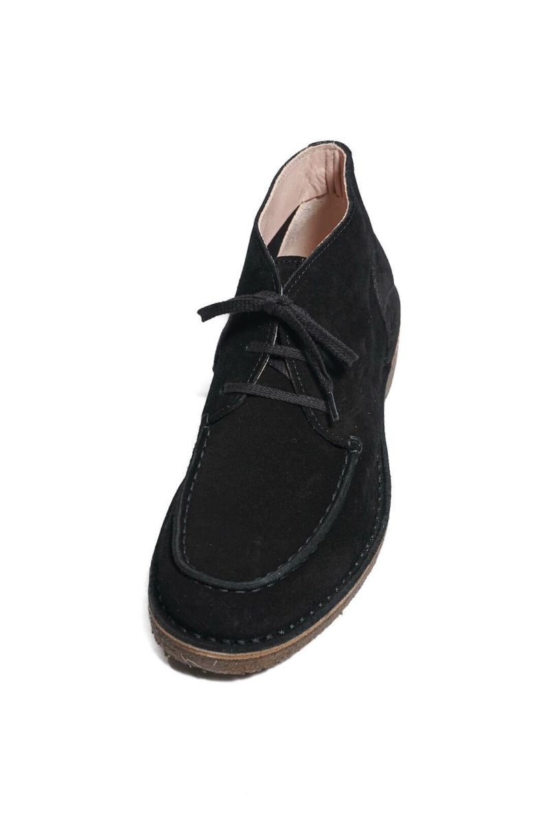 カジュアルさと上品さを兼ね備えたモックトゥタイプのチャッカブーツ。ほど良いボリュームのラストで、幅広いパンツに合わせやすい一足です。 アッパーには、ヨーロッパでヴェジタブルタンニン鞣しされた上質なスエードを使用。伝統的な製法によって生まれる丈夫さと通気性、そして細やかな質感が魅力です。 ソールにはブラジル産パラゴムの木から作られるナチュラルクレープラバーを採用。軽さ・屈曲性・クッション性に優れ、ステッチダウン製法によって快適な履き心地を実現しています。 ライニングを省いた柔らかなつくりで、足馴染みも抜群。2種類のシューレースが付属し、スタイルに合わせて楽しめます。 上質で堅牢なつくりながら、コーディネートに取り入れやすいデザイン。コストパフォーマンスにも優れた一足です。