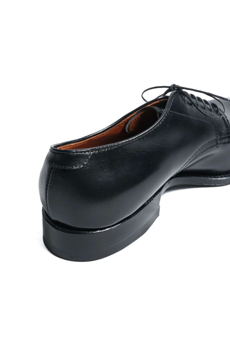 ラストの特長を靴全体で表現したモディファイドプレーントウのドレスカーフモデル。モディファイドラスト特有の内外非対称のフォルムと、アーチシェイプによる美しい曲線がもっとも際立つ1足。通常は分かりにくいラストという靴本来の型をデザインに取り入れた珍しいモデルです。