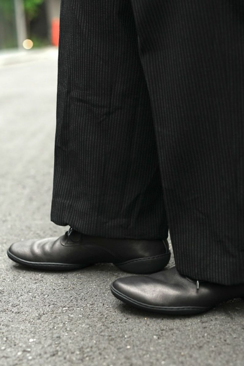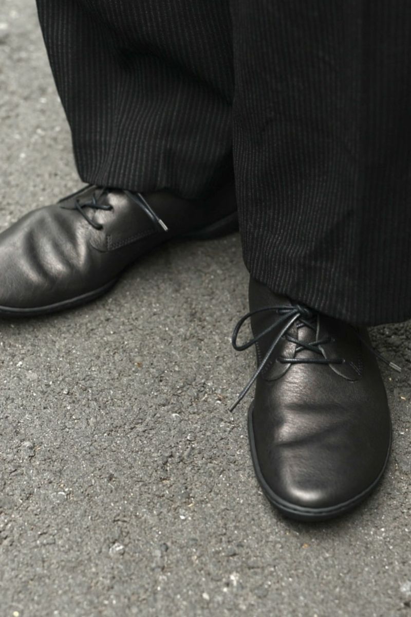 「Cup」コレクションは「素足で歩く感覚を反映させる」というアイデアのもと、モダンなルックスと軽やかな履き心地を実現した人間工学に基づいたシューズを展開しています。2つに分かれたシェル状のソールユニットは、かかととボール部を安全に保護し、アッパーは軟らかく柔軟です。 また、インソールは足の形になじむように、厚手の(植物タンニンなめし)レザーで作られています。