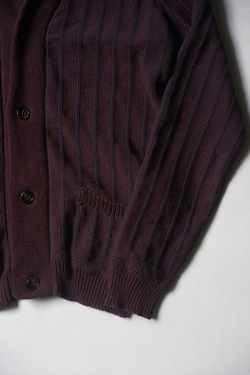 FRANK LEDER(フランクリーダー)の"HAND KNITTED"ショールカラーカーディガン。複雑な編地がとても良い表情を醸し出しています。