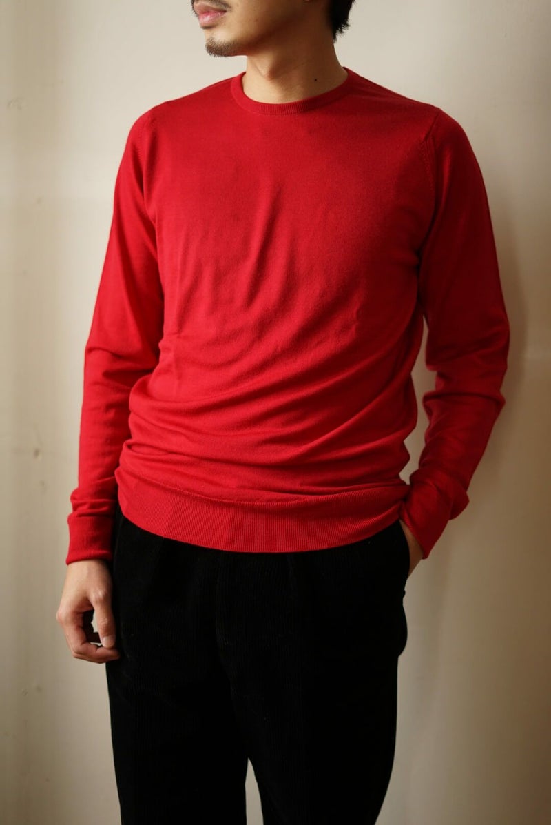 素材は30ゲージのメリノウール。薄手で繊細のタッチの為、チクチクしてしまう事もなく、耐久性にも優れています。カジュアルでありながらもラフになりすぎないのは、JOHN SMEDLEYの品の良さがあるからこそ。インナーに合わせるアイテムで大きく印象が変わる為、使い勝手の良さは抜群です。