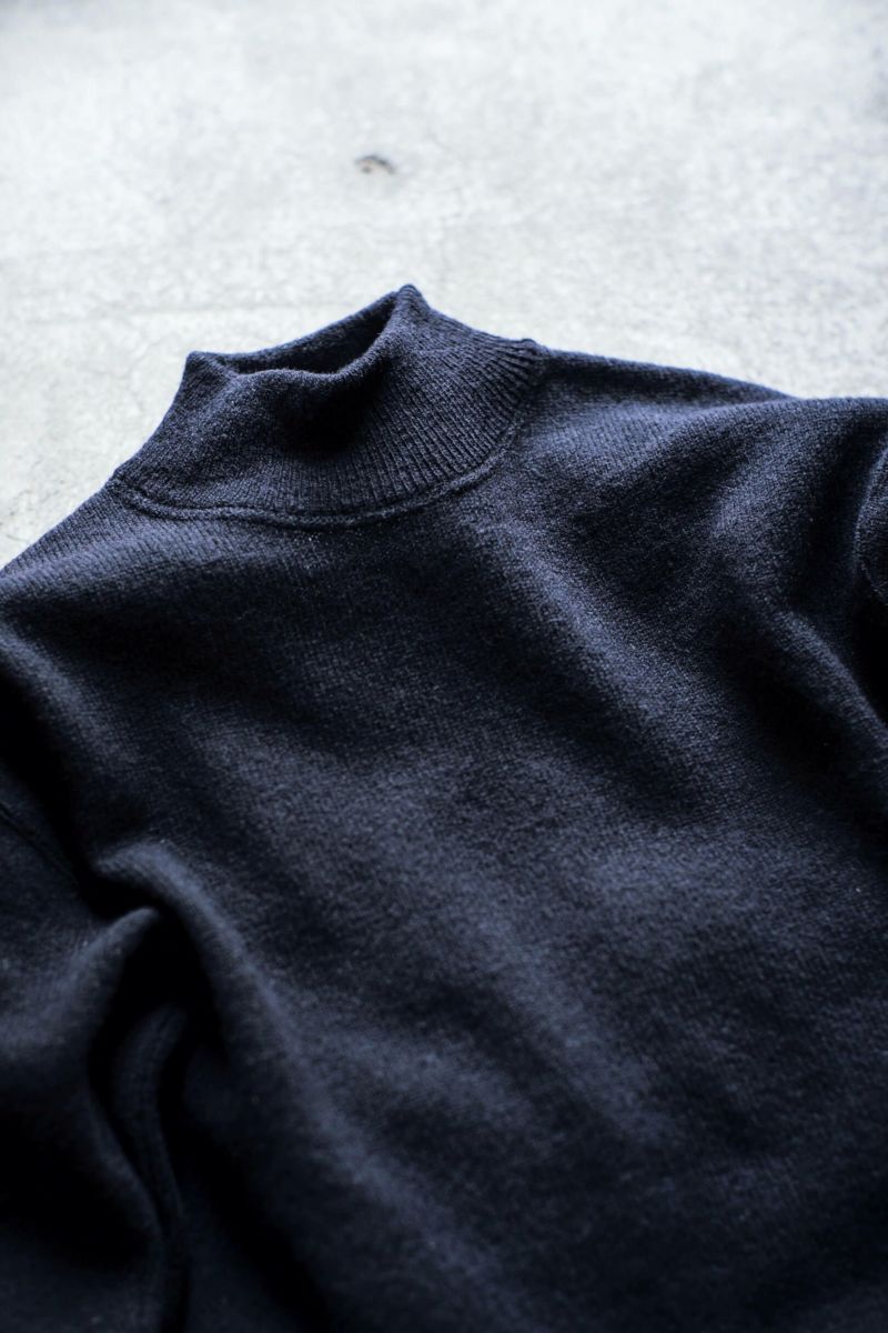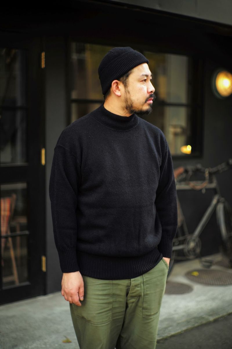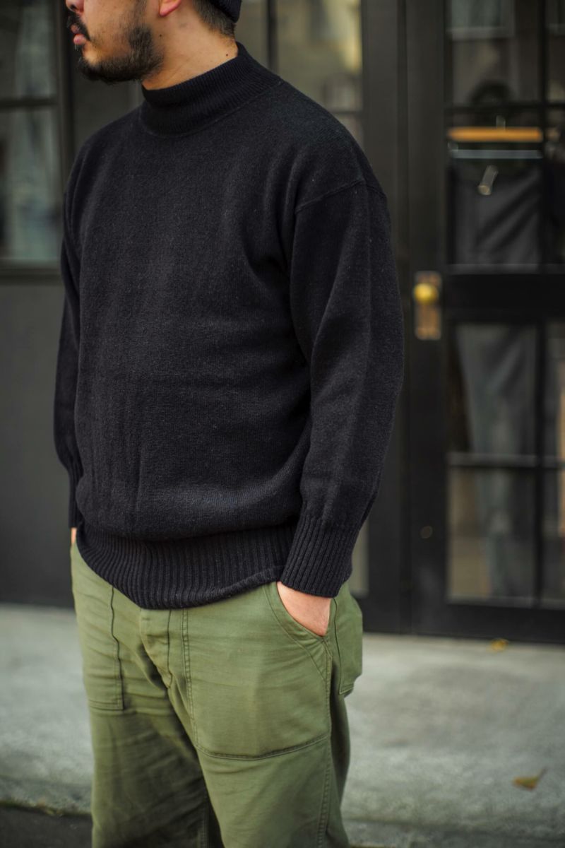 1940年代に米海軍で採用されていた物をベースとしたMSG & SONSのゴブセーター。長めのリブに対して、若干短めの袖丈、着丈、さらに袖口、裾口に向かって急に細くなる特徴的なシルエットを捉えた仕様となっています。ハリ感とドライタッチな質感が特徴の紡毛紡績ウール糸と梳毛紡績ウール糸をあえて混紡して使用したオリジナル糸を完全別注で製作。