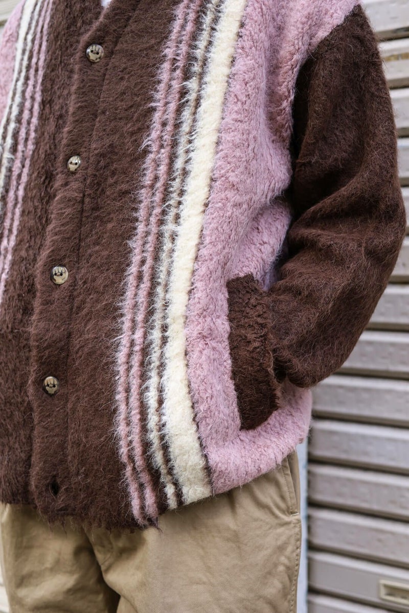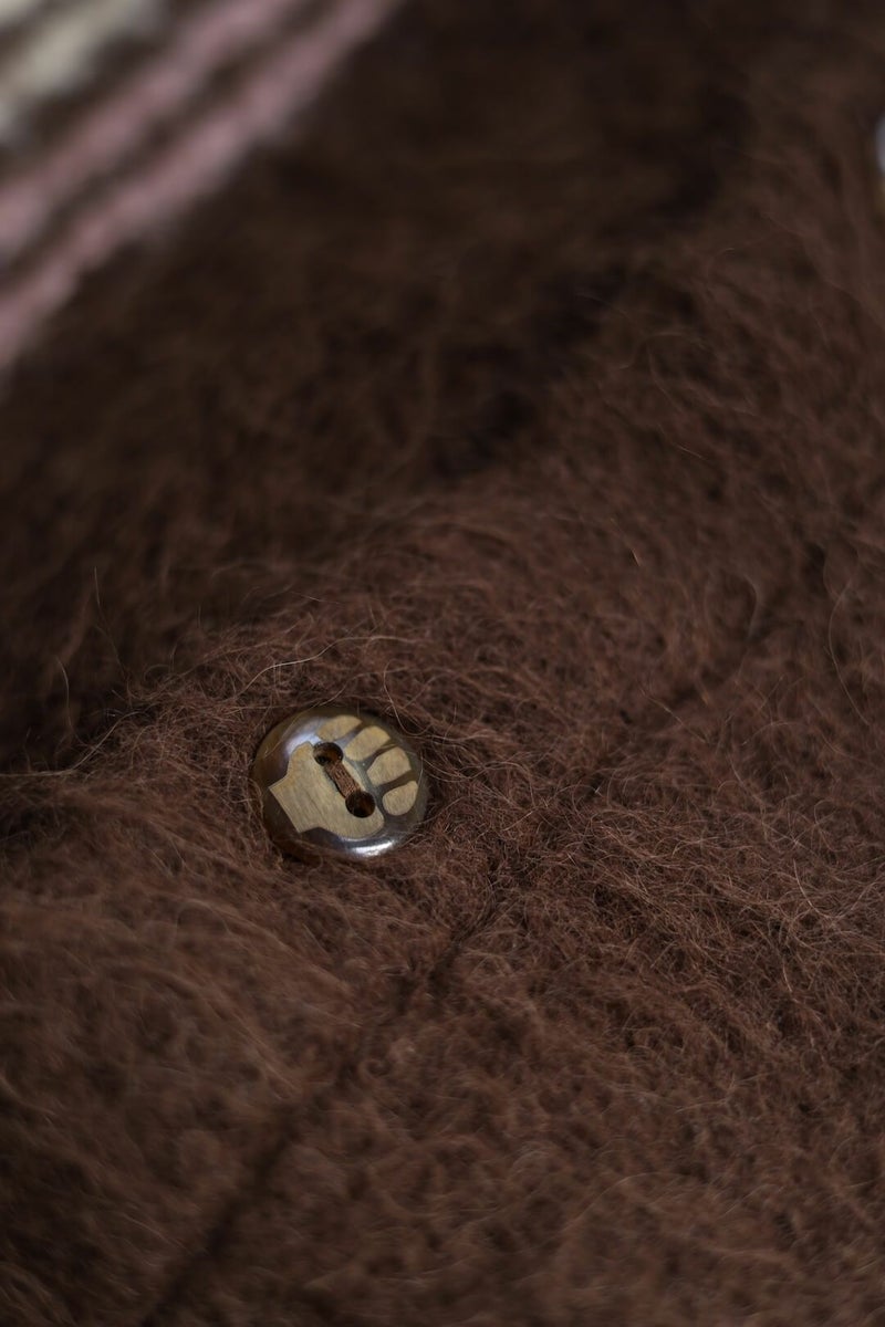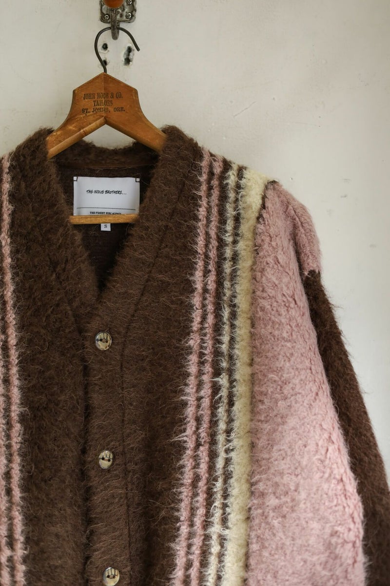 希少品種でもある"スリ種"を贅沢に使用したカーディガン。スリ種はアルパカ全体の10%未満と、大変希少な品種であり毛足が長いことが特徴。 肩や、袖など擦れる部分にレザーを当ててあり、より実用的なディテールになっています。 身幅、アーム共に広めに作られたゆったりめのカーディガンです。 【color:GREY STRIPEはこちら】 【THE INOUE BROTHERS / ザ イノウエブラザーズ】 ザ イノウエブラザーズは、コペンハーゲンを拠点とし、地球規模の社会課題をクリエイティブに解決するデザインスタジオ。2004年、デンマークで生まれ育った井上兄弟、聡と清史が設立。 現在は南米アンデス山脈に住む先住民とダイレクトトレードでつくるアルパカニットウェアと、全アイテムがGOTS認証を受けるペルー産のオーガニックピマコットンウェアを中心に展開中。 あらゆるパートナーと共創しながら、ナチュラルでサステナブルな素材にこだわった活動を続けている。 綿47%、アルパカ45%、ナイロン8% 革部分:牛革 : 100% Made in Peru ※こちらは自宅で手洗い可能です。 THE INOUE BROTHERS / Suri Cardigan Price ¥63,800-(税込)
